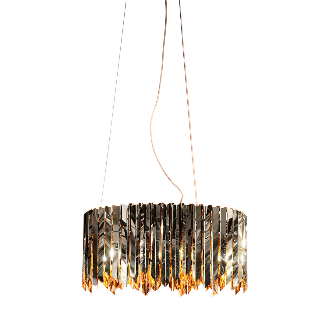Inspired by the mixed French and Spanish styles of our early New Orleans history, this chandelier uses Silver and Gold to bring glamour and sizzling modern style to your space. The angled metal plates create the feel of a drum shape showing silver on the outside, and allowing polished gold to shine through once the lights are illuminated. Our glamourous design creates a look of timeless elegance that works beautifully in traditional, modern or eclectic interiors. A focal point for sure, this 6 light chandelier will add the perfect amount of light and style to your space.