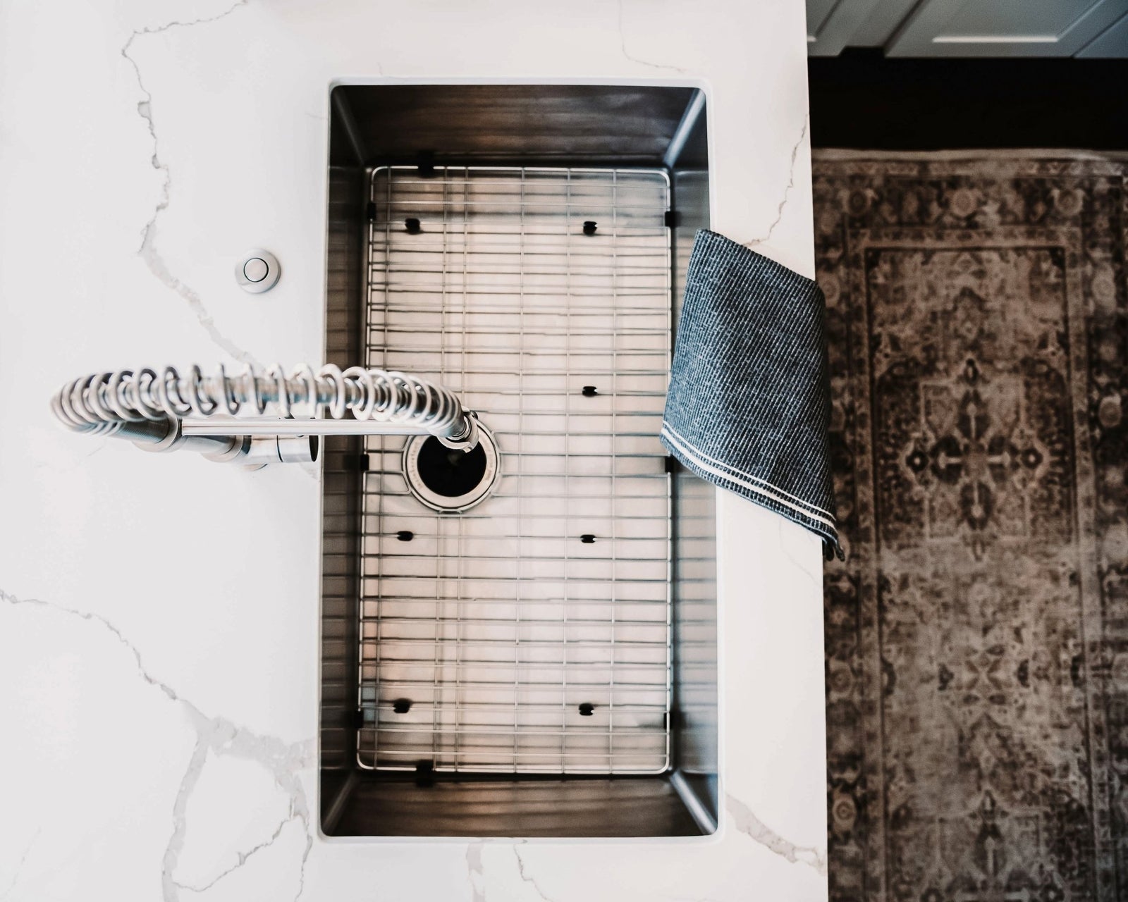 - Custom designed spout swivels 360 degrees to allow for unobstructed sink access