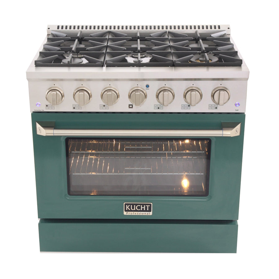 KUCHT Professional 36 in. 5.2 cu. ft. Propane Gas Range with Sealed Burners and Convection Oven in Stainless Steel with Green Oven Door