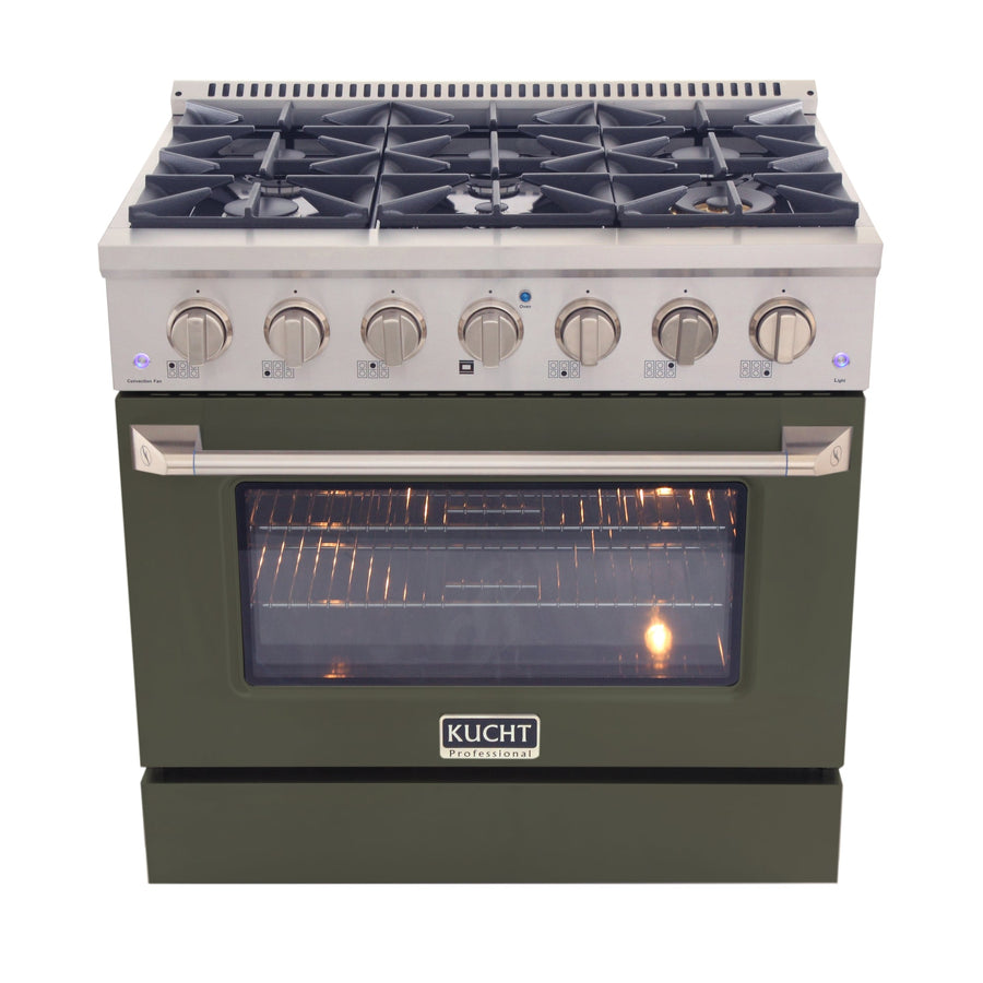 KUCHT Professional 36 in. 5.2 cu. ft. Propane Gas Range with Sealed Burners and Convection Oven in Stainless Steel with Olive Green Oven Door