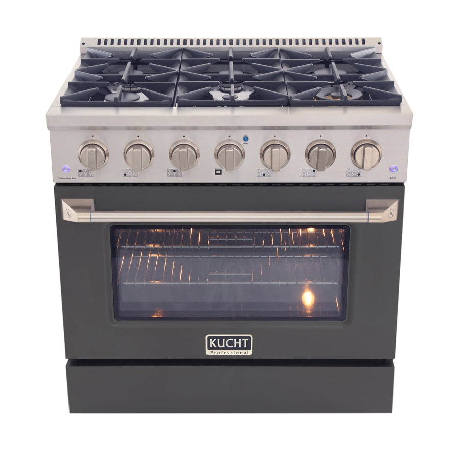 KUCHT Professional 36 in. 5.2 cu. ft. Propane Gas Range with Sealed Burners and Convection Oven in Stainless Steel with Cement Grey Oven Door