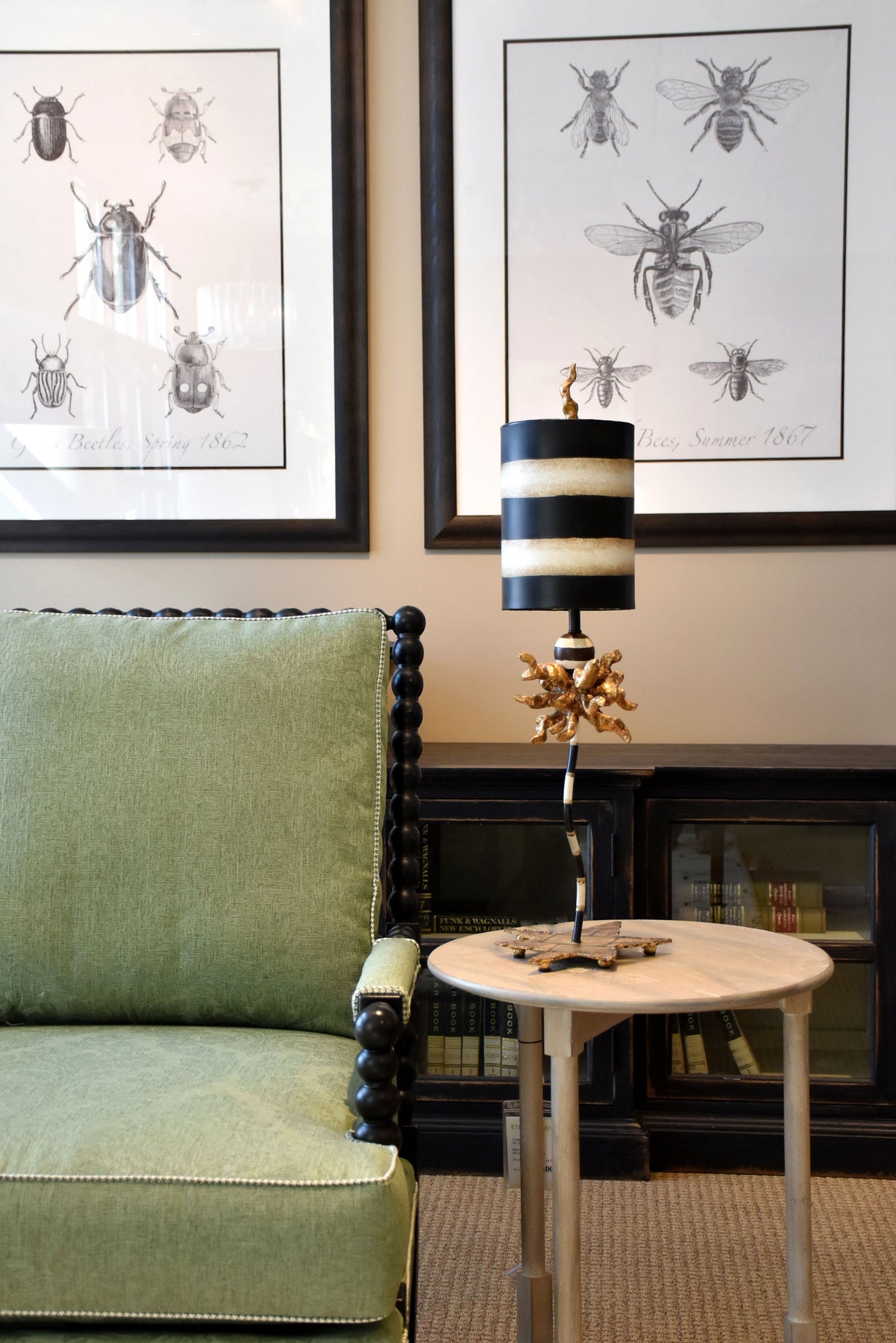 This table lamp is the ideal size for illuminating a desk in your home office, accenting the dressing table in your bathroom, or bringing a warm ambiance to a side table in your breakfast nook. The perfect height of 25" and a base of 8" this accent lamp works in any whimsical, eclectic or transitional decor. This black and white stripe shaded Lamp adds a Classic Charm and grace to your well loved and stylish home decor.
