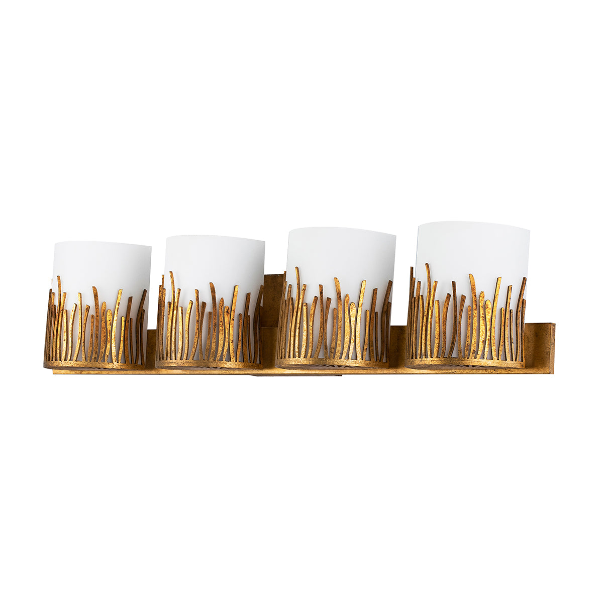 Sawgrass 4 Lt bath bar in gold leaf and opal glass provides a unique, organic feel to any setting