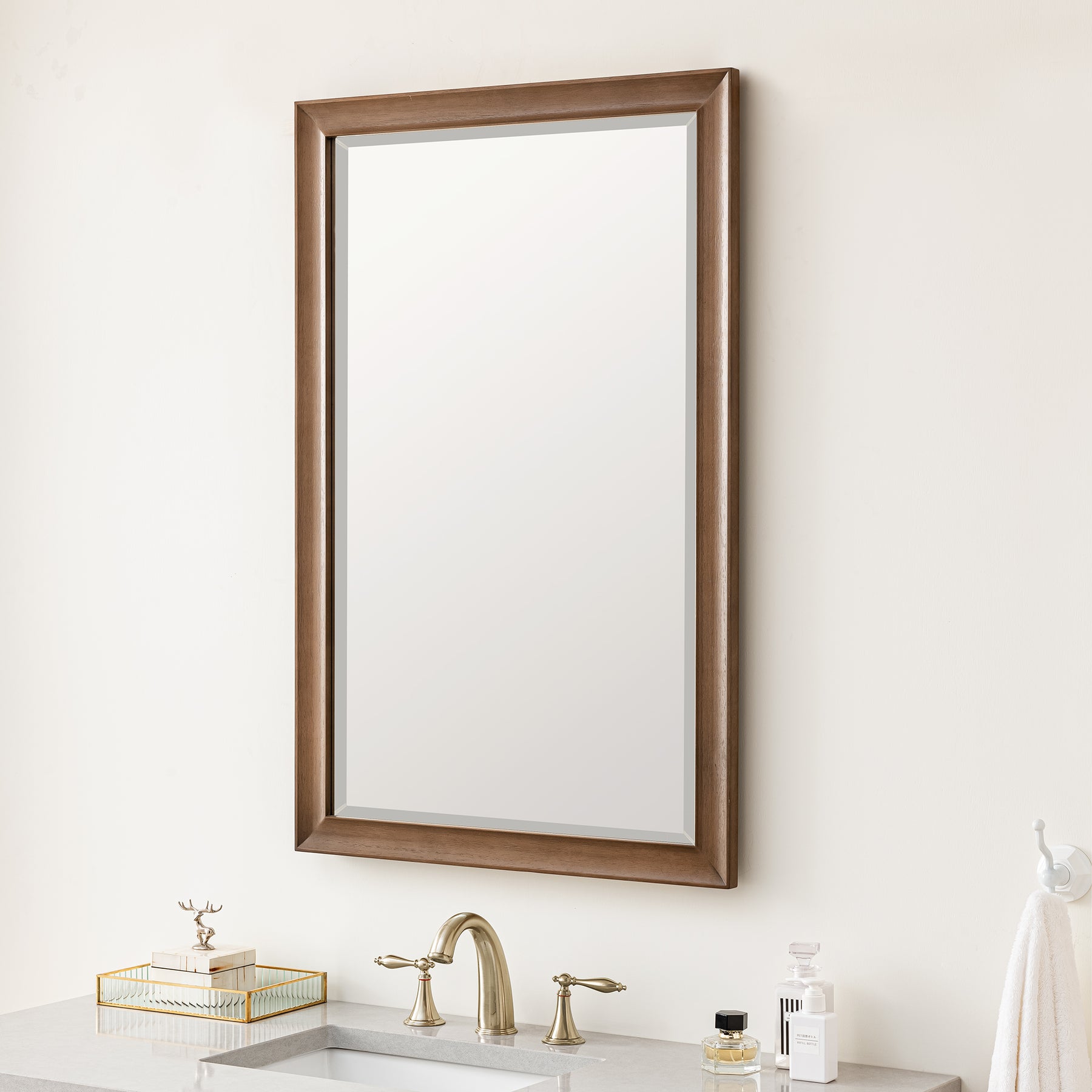 The simple sculpted detail and subtle concave frame of the Glenbrooke 26" Rectangular Mirror add a modern touch to a timeless look. Designed to coordinate across several James Martin Vanities collections, this classically elegant mirror in Whitewashed Walnut finish is the perfect addition to any room of your home. Crafted using premium bevel-cut glass, the Glenbrooke features two sets of recessed keyhole brackets, which allow for versatile installation - either vertical or horizontal. For your convenience, mounting hardware is included.