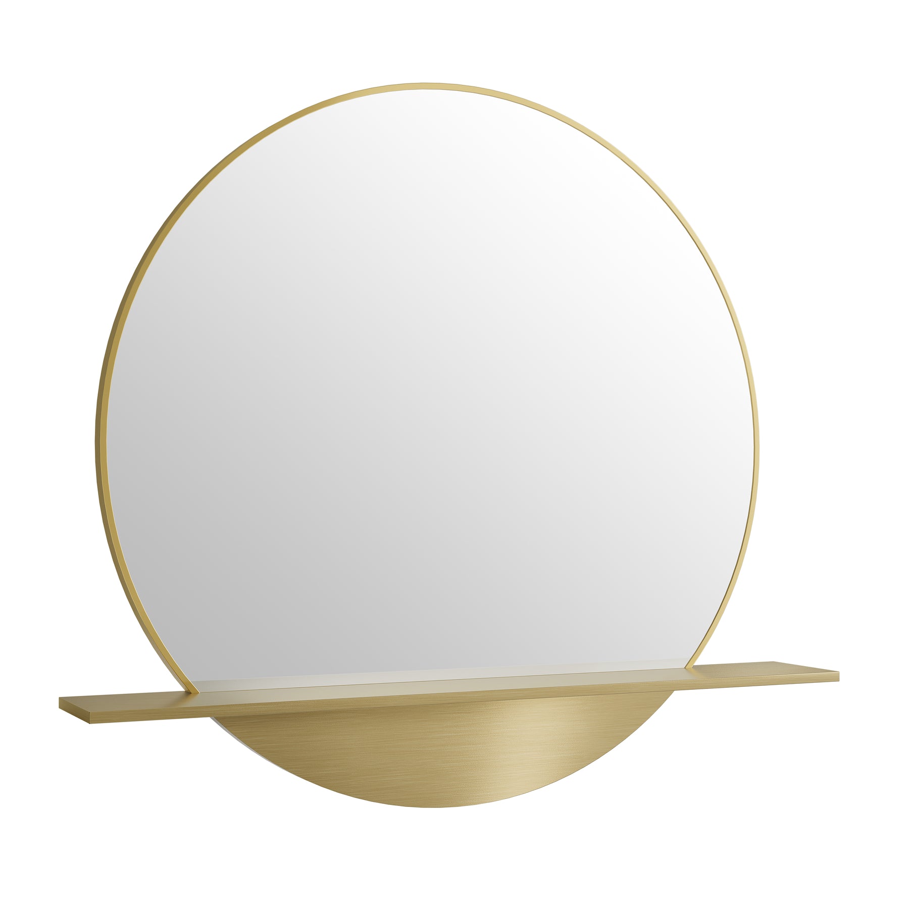 The modern Platform Mirror is contemporary in design and practicality. This round mirror is surrounded by a gleaming Radiant Gold frame, and features an integrated shelf, making it the perfect option for any room in your house - ideal for holding toiletries in the bathroom, keys in your entryway, or decorative accents in the living room. The Platform Mirror comes conveniently ready to hang with mounting hardware included in the package.