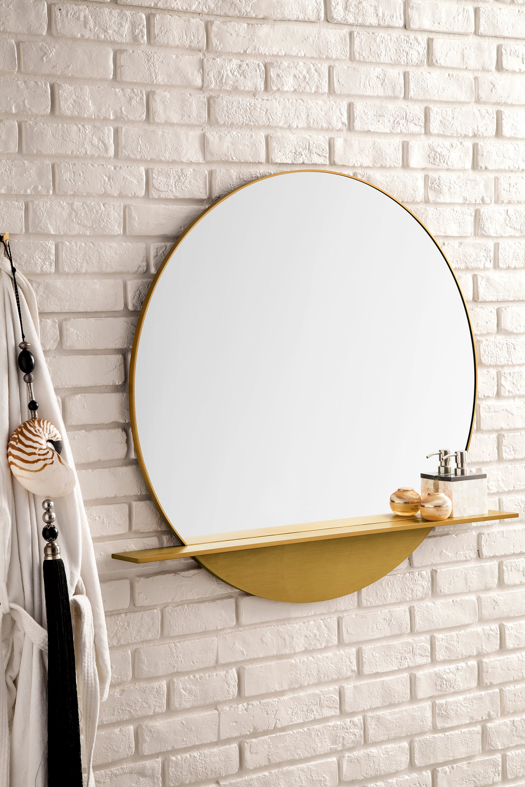The 36" Radiant Gold Platform Mirror by James Martin Vanities is contemporary in design, yet brings a primal energy to any room you put it in. This round shaped mirror is surrounded by a gleaming gold frame. The integrated shelf is ideal for holding toiletries in the bathroom, key in your entry way or even decorative accents in the living room. The raw metal finish will easily pair with any of your existing décor and it comes ready to hang. For your convenience, the mirror includes mounting hardware in the package.