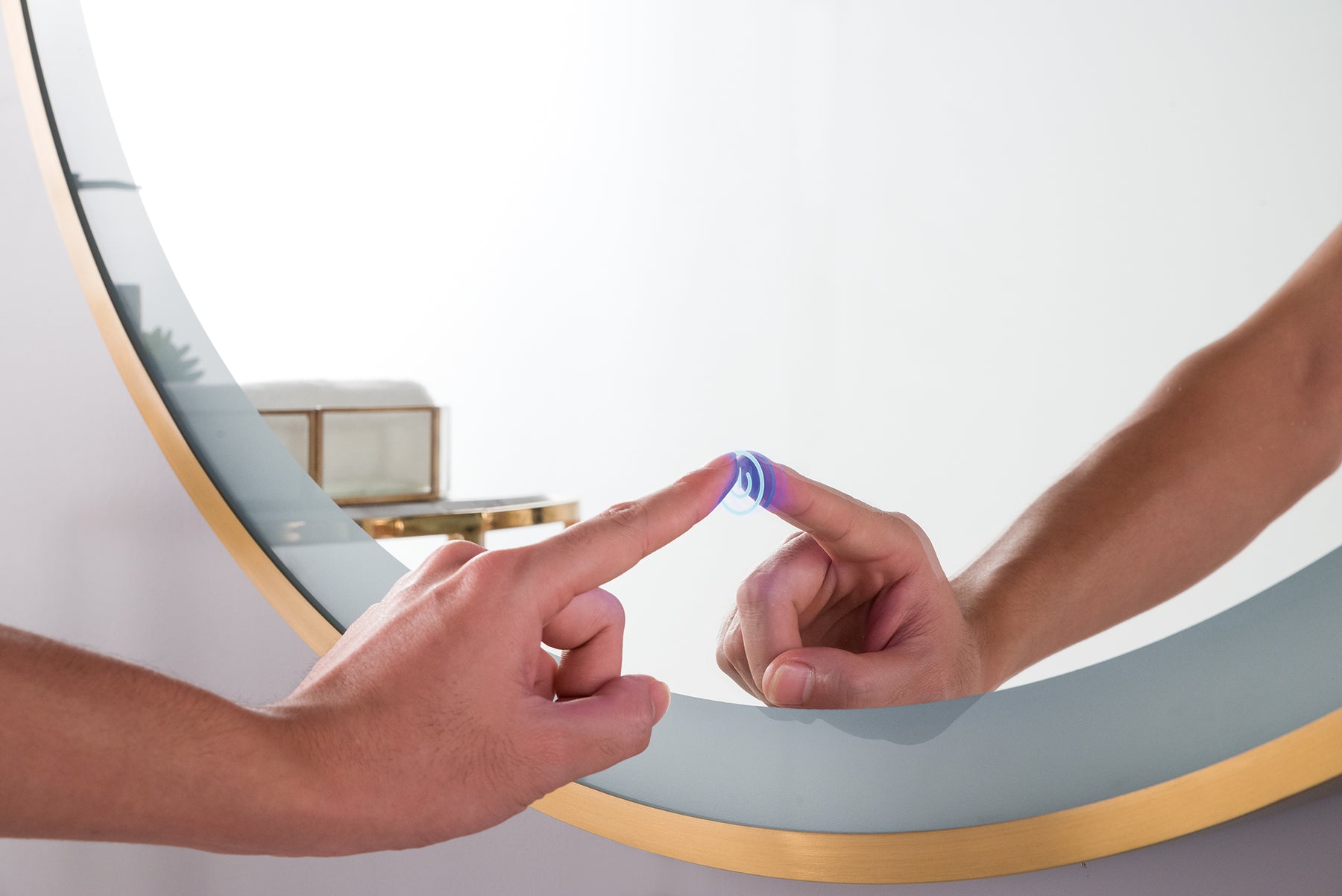 Create the perfect area for getting ready under the light of this Radiance 36" mirror collection by James Martin Vanities. Featuring a sleek design with a Brushed Gold tone frame, this mirror accentuates your contemporary decor beautifully. The stainless-steel frame construction offers sturdy support to the LED lighted mirror for enhanced sturdiness and durability. Use the touch sensor near the bottom of the mirror to turn the light on and off or adjust the brightness level to suit the lighting in your bathroom or bedroom.