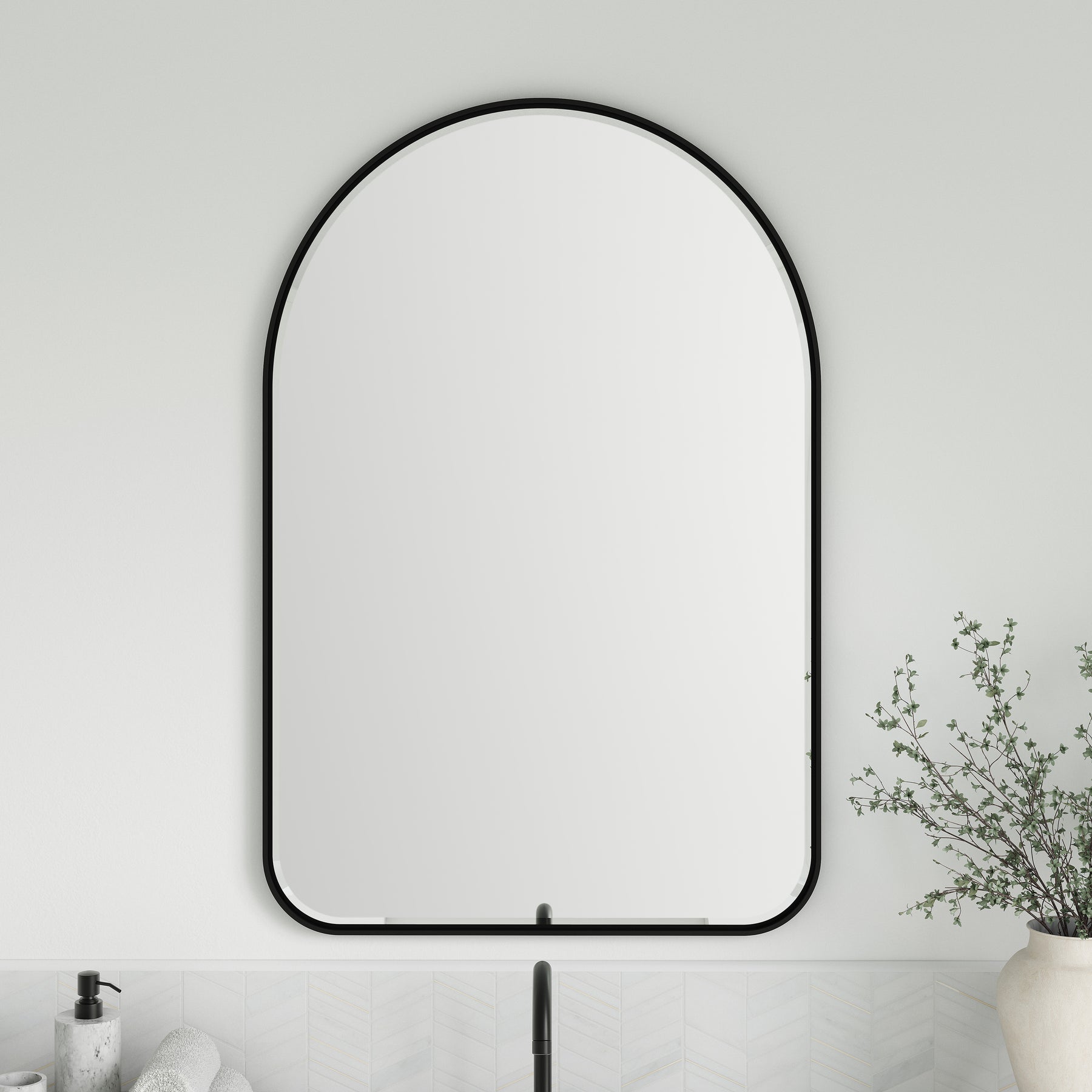 Inspired by modern framed canvas art, the Rohe 24" Arched Mirror appears to float inside the modern Matte Black metal frame, adding visual interest to the beautifully bevel-cut glass. Designed to be hung vertically, this mirror comes with mounting hardware for your convenience. The Rohe's simple, yet elegant design and sophisticated finish make it the perfect accent for your bathroom and any other living spaces in your home.