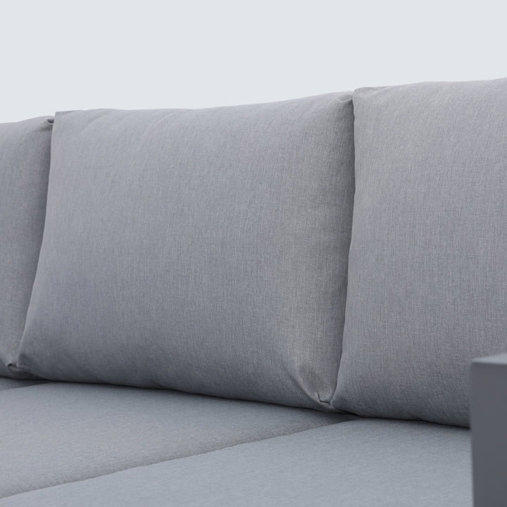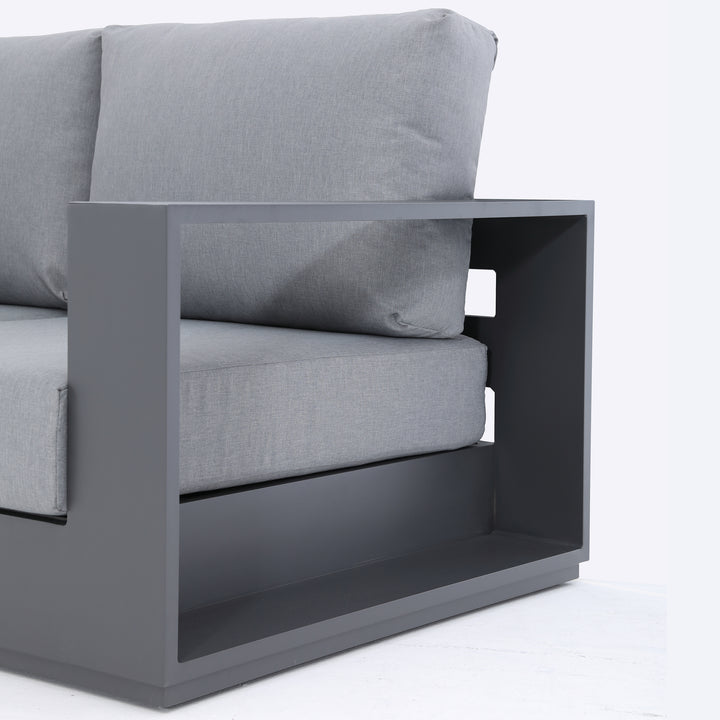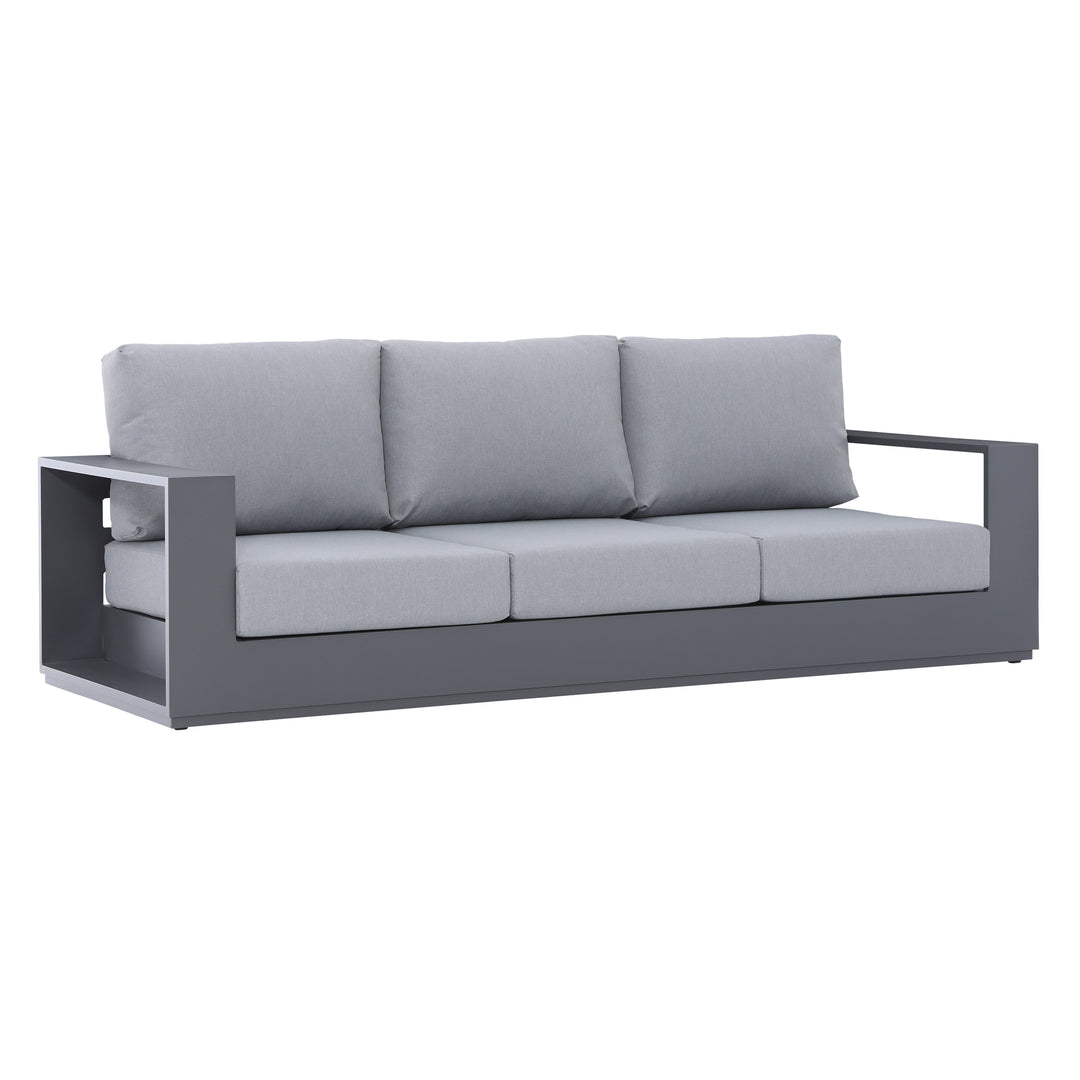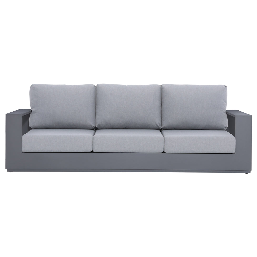 The Ficarazzi Outdoor Sofa Set & Coffee Table collection brings exceptional comfort and functionality, making it a stunning addition to your backyard… spruce up your outdoor space and take the party outside. Perfect to kick back and enjoy the sun with family and friends. Durable all weather powder coated aluminum structure, large foam cushions, easy to care fabric with conveniently designed zippers for quick removal and wash.