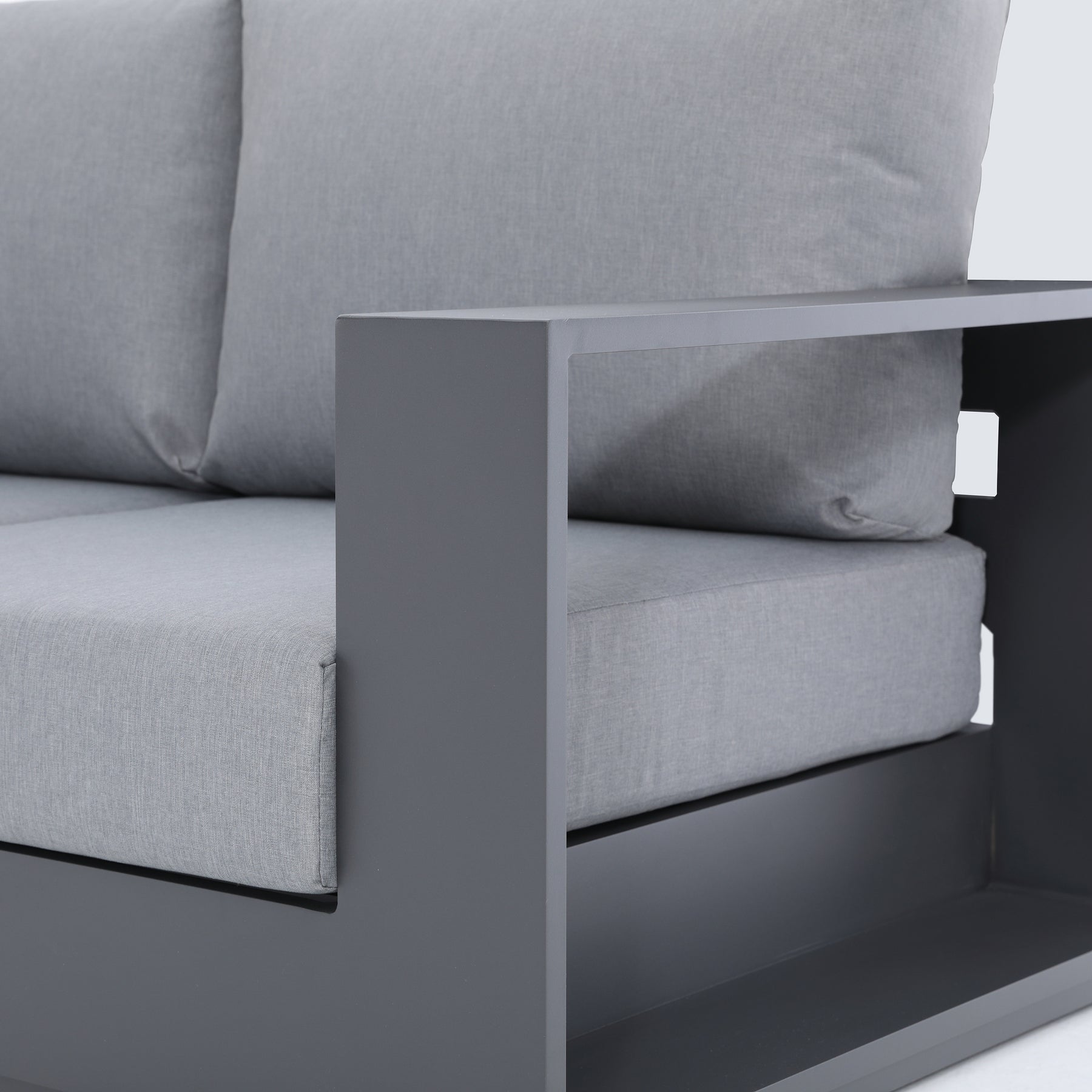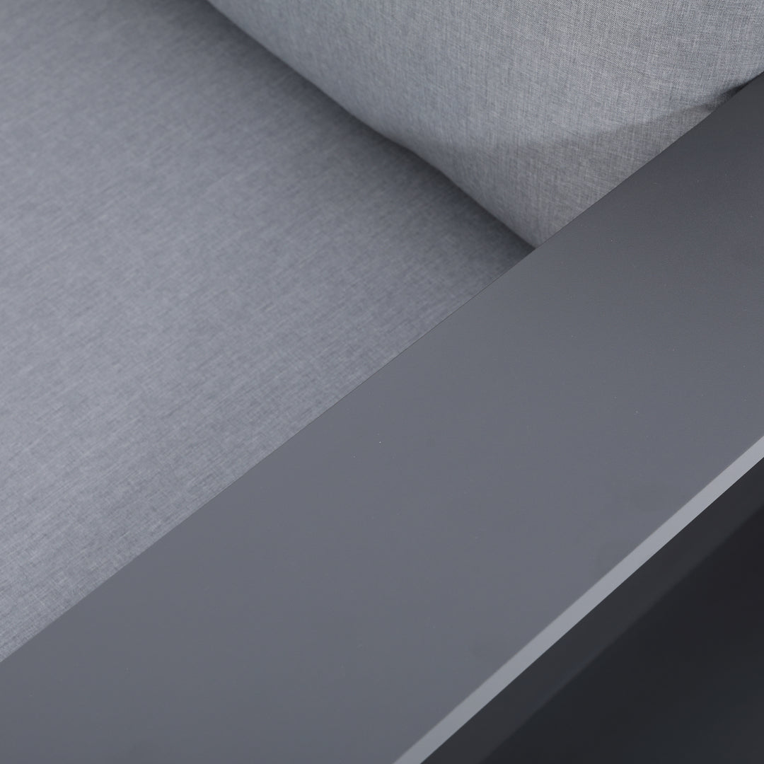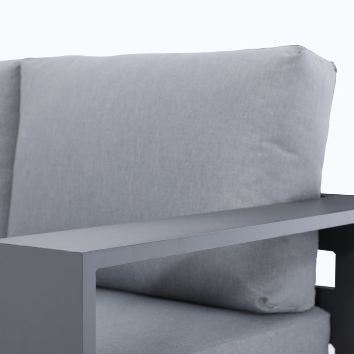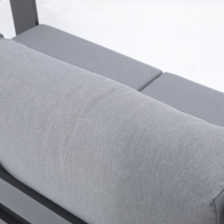 The Ficarazzi Outdoor Sofa Set & Coffee Table collection brings exceptional comfort and functionality, making it a stunning addition to your backyard… spruce up your outdoor space and take the party outside. Perfect to kick back and enjoy the sun with family and friends. Durable all weather powder coated aluminum structure, large foam cushions, easy to care fabric with conveniently designed zippers for quick removal and wash.