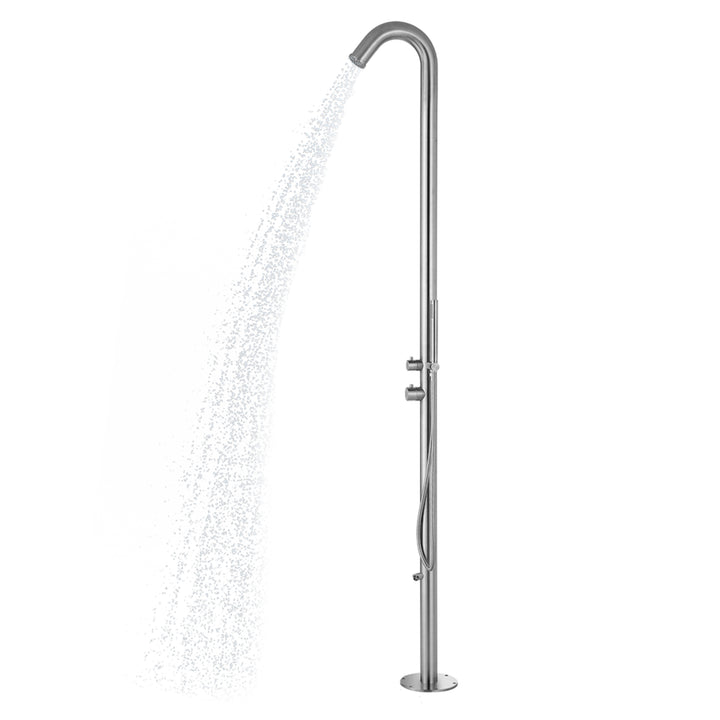 PULSE ShowerSpas Wave Outdoor Shower System is ideal for your outdoor living and is sure to be the center piece for your backyard Oasis. The Wave comes loaded with a handshower, foot rinse and built-in pressure balance valve. Easy to install, the freestanding Wave will make your backyard a perfect place to enjoy the summer days. Easily switch between functions via the conveniently located diverter. The Wave includes an outdoor showerhead, handshower, foot rinse spout and freestanding base.
