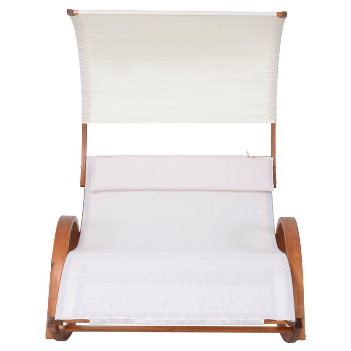 Introducing our Outdoor Wooden Frame Lounge Daybed with White Upholstery and Canopy – an elegant and luxurious retreat for your outdoor space. Immerse yourself in the perfect blend of comfort and style as you relax beneath the canopy on this chic wooden daybed. Whether you're seeking a shaded spot for quiet contemplation or a chic seat for socializing, this daybed combines functionality and design for an elevated outdoor experience.