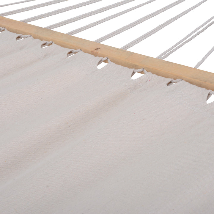Introducing our Outdoor Wooden Frame Hammock with White Upholstery – a stylish and comfortable retreat for your outdoor sanctuary. Immerse yourself in the gentle sway of a hammock, supported by a wooden frame and adorned with chic black upholstery. Whether you're seeking a solitary spot for relaxation or a chic seat for socializing, this hammock combines the timeless allure of wood with the sophistication of black upholstery for an elevated outdoor experience and transform your outdoor area into a haven of comfort and style.