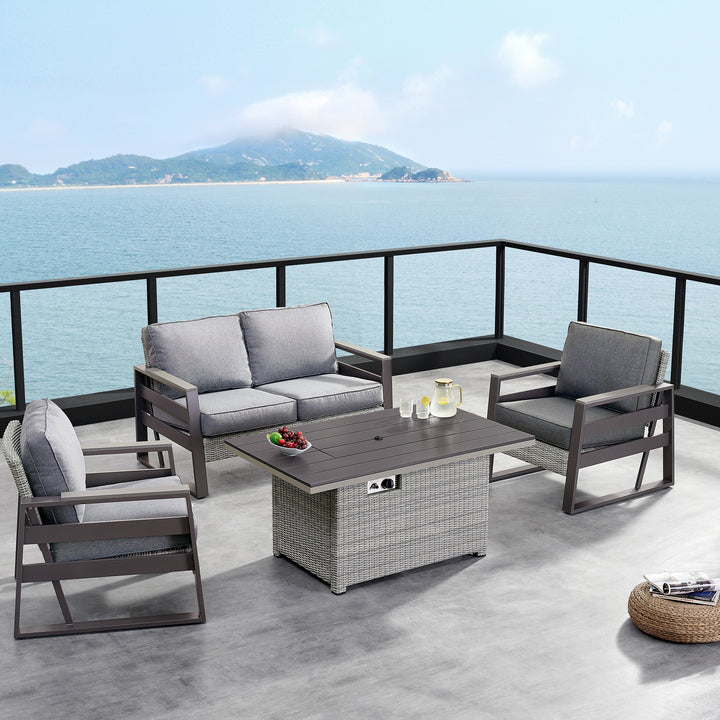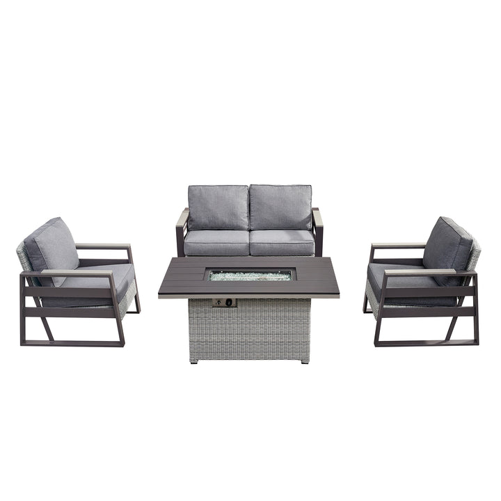 Introducing the Deko Living Tricarico Outdoor Conversation Set with 50,000 BTU Propane Firepit Table, meticulously designed to elevate your outdoor living experience. Crafted with the finest materials, this set combines comfort, functionality, durability and style. This set is sure to become the focal point of your outdoor gatherings and leisure time… enhance your outdoor living space and create a welcoming environment for relaxation and entertainment for hosting family and friends in a relaxing garden atmosphere.