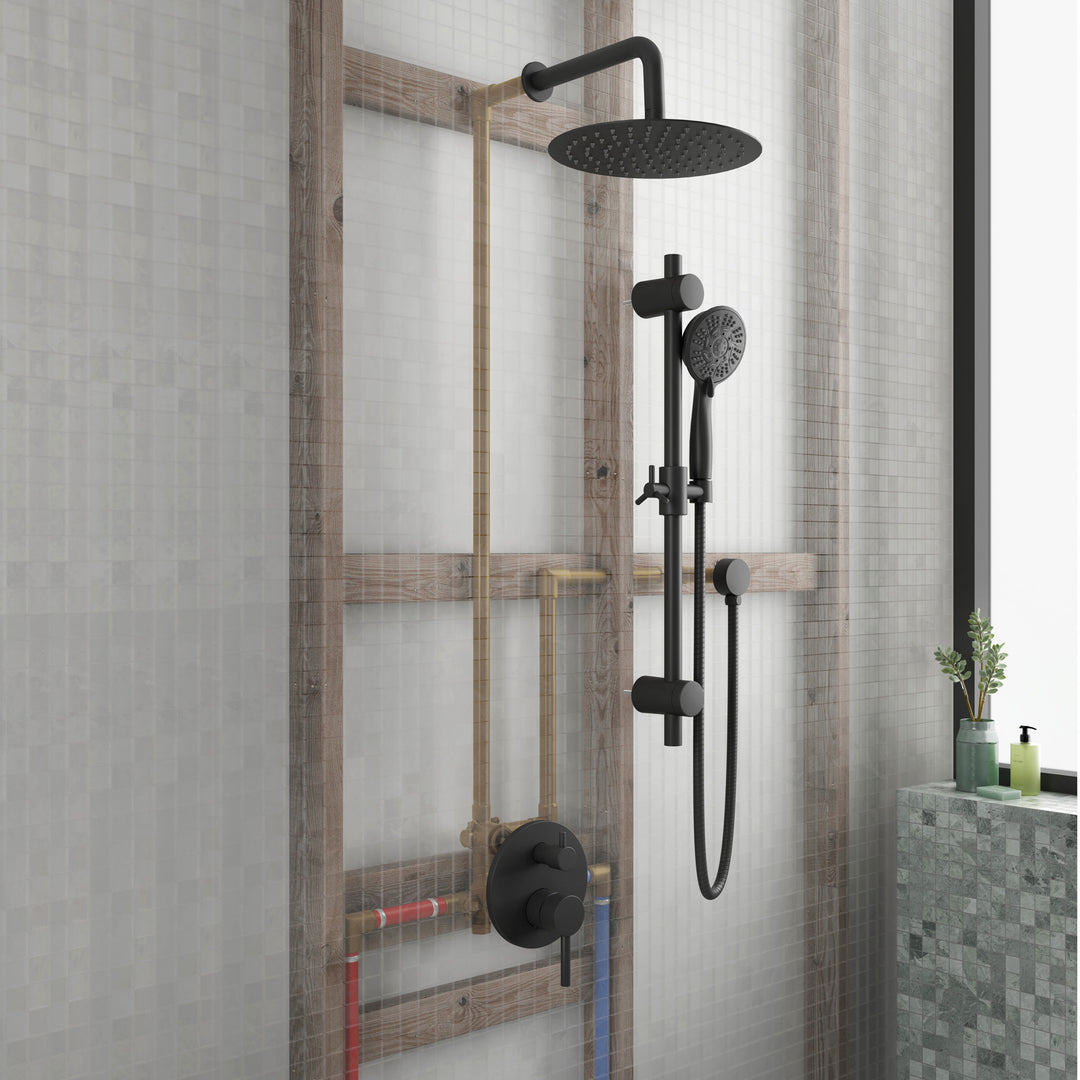 The Refuge Combo Shower System is a combo unit that comes in four finishes to match any style bathroom. Equipped with an 8” rain showerhead, brass shower arm, adjustable slide bar, stainless steel handshower hose, multi-function handshower and tru-temp pressure balance mixing valve with Diverter, this combo system completes any remodel adding beauty and style to your bathroom. The Refuge Combo Shower System is the perfect solution for a modern bathroom remodel and designed to enhance your shower experience.