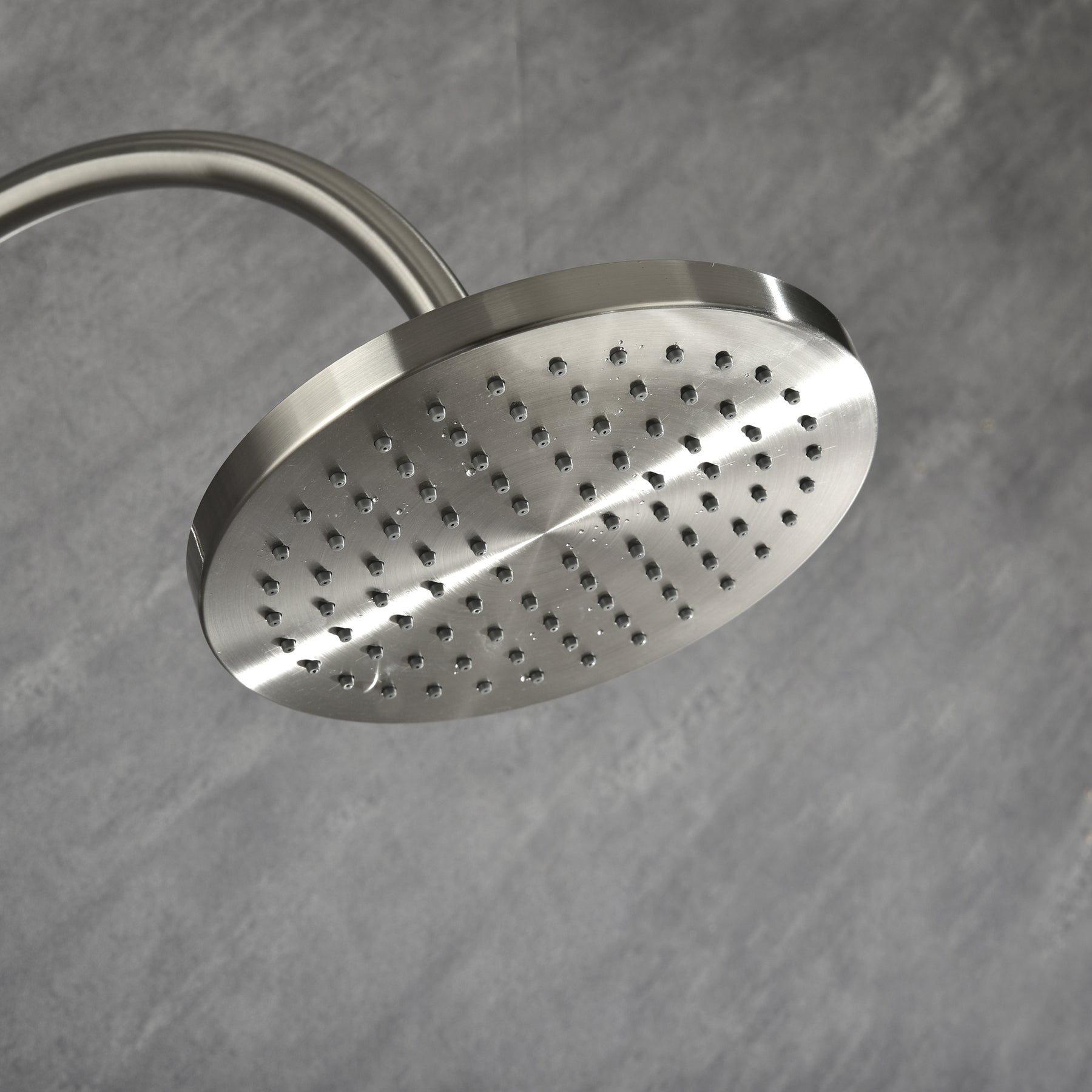- 8 inch rain showerhead with soft tips to clear mineral buildup for long lasting performance