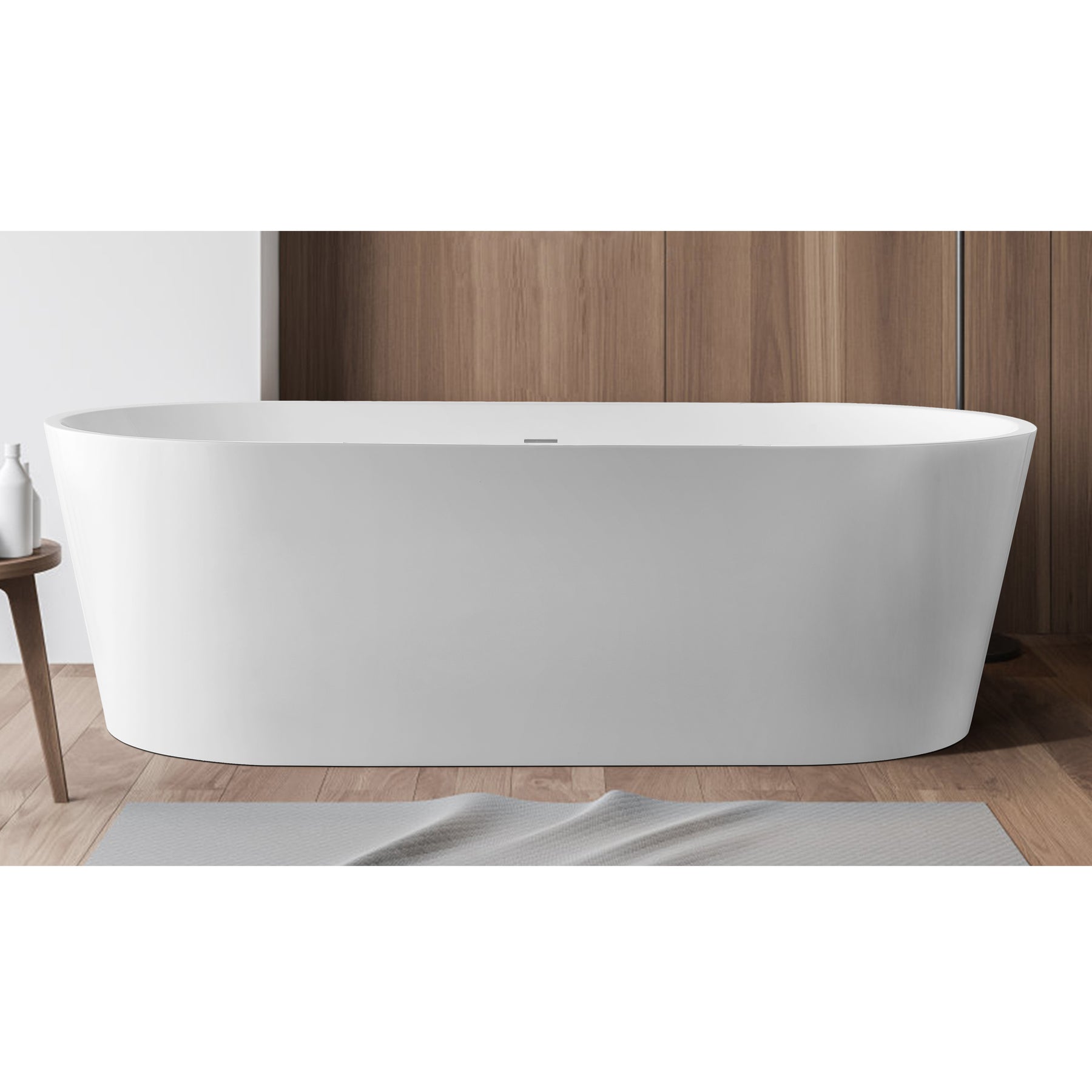 - 100% glossy white acrylic freestanding tub in white complements any bathroom