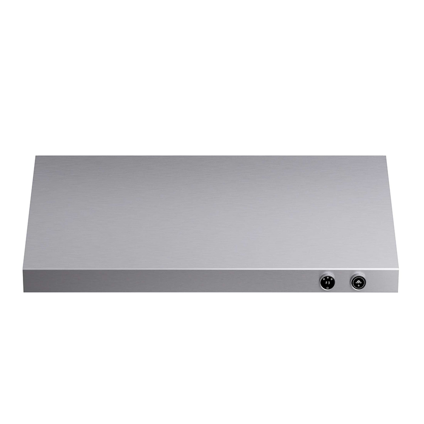 The Forno Biagio 48" Wall-Mounted Range Hood combines efficient smoke and odor removal with a modern stainless steel finish. Its 1200 CFM motor ensures strong yet quiet performance, while heavy-duty, dishwasher-safe baffle filters trap grease for easy cleaning. Designed for 48" cooktops, it features a 3-speed fan, intuitive knob controls, and dimmable LED lighting for a well-lit, customized cooking experience. The power-off delay clears lingering steam, and its versatile installation allows for wall-mounted or under-cabinet setups.