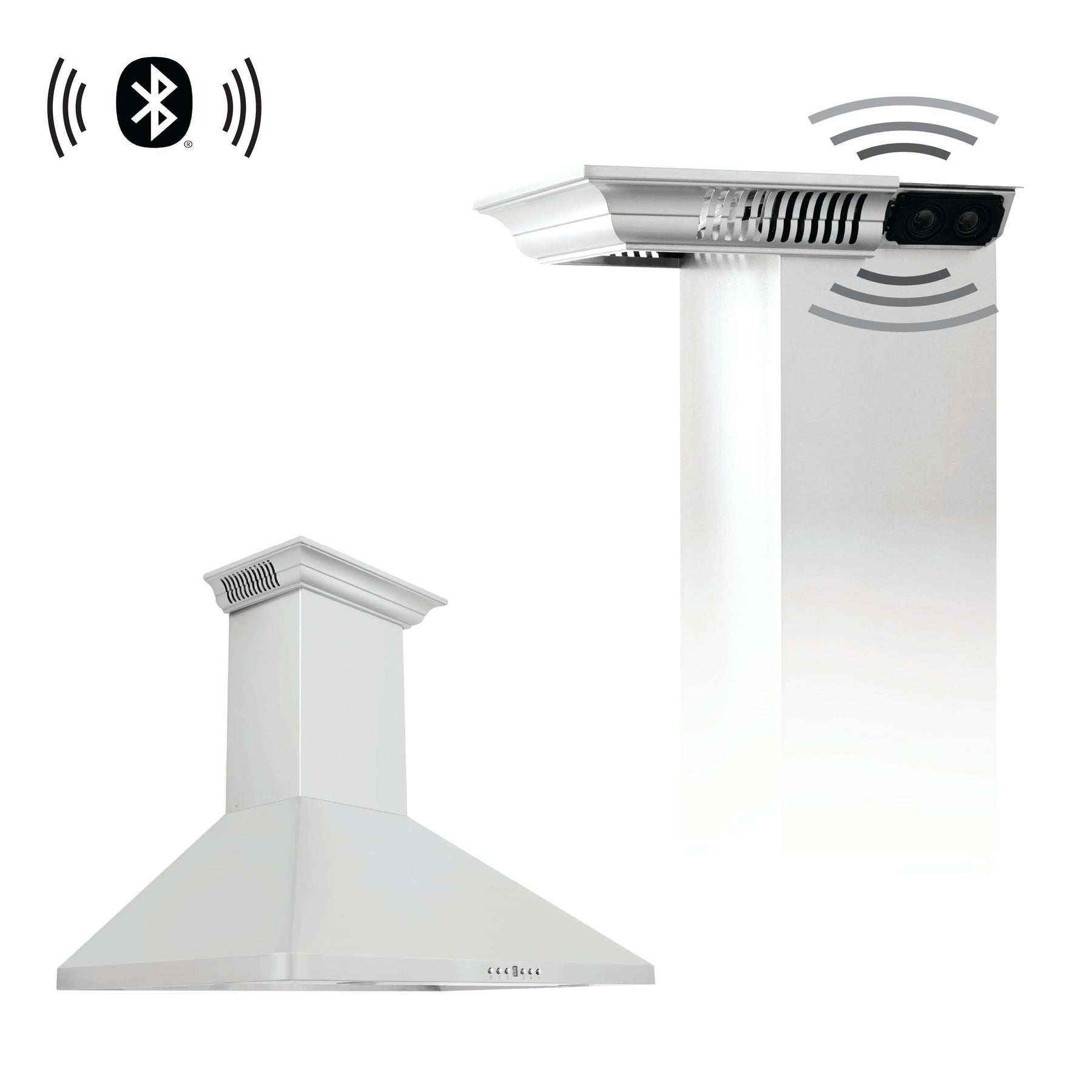 ZLINE 30 in. Wall Mount Range Hood in Stainless Steel with Built-in CrownSound™ Bluetooth Speakers, KF1CRN-BT-30
