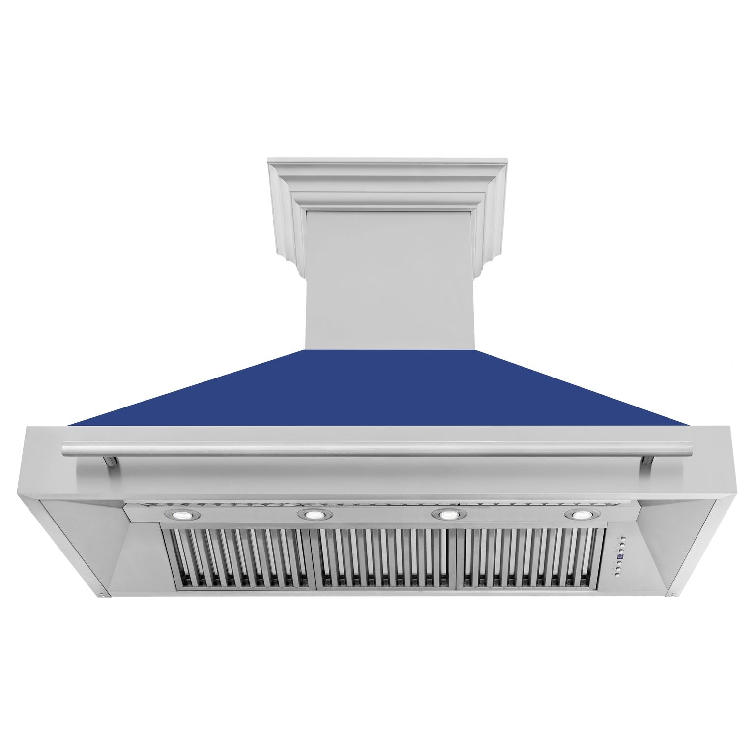 Bring a new meaning of Attainable Luxury® to the center of your kitchen with ZLINE's Ducted Wall Mount Range Hood in Stainless Steel with a Blue Matte Shell. Providing the ultimate combination of customization and durability, this range hood features ZLINE's stainless steel layered with a stunning blue gloss shell. Complete your centerpiece with our selection of colored panels.