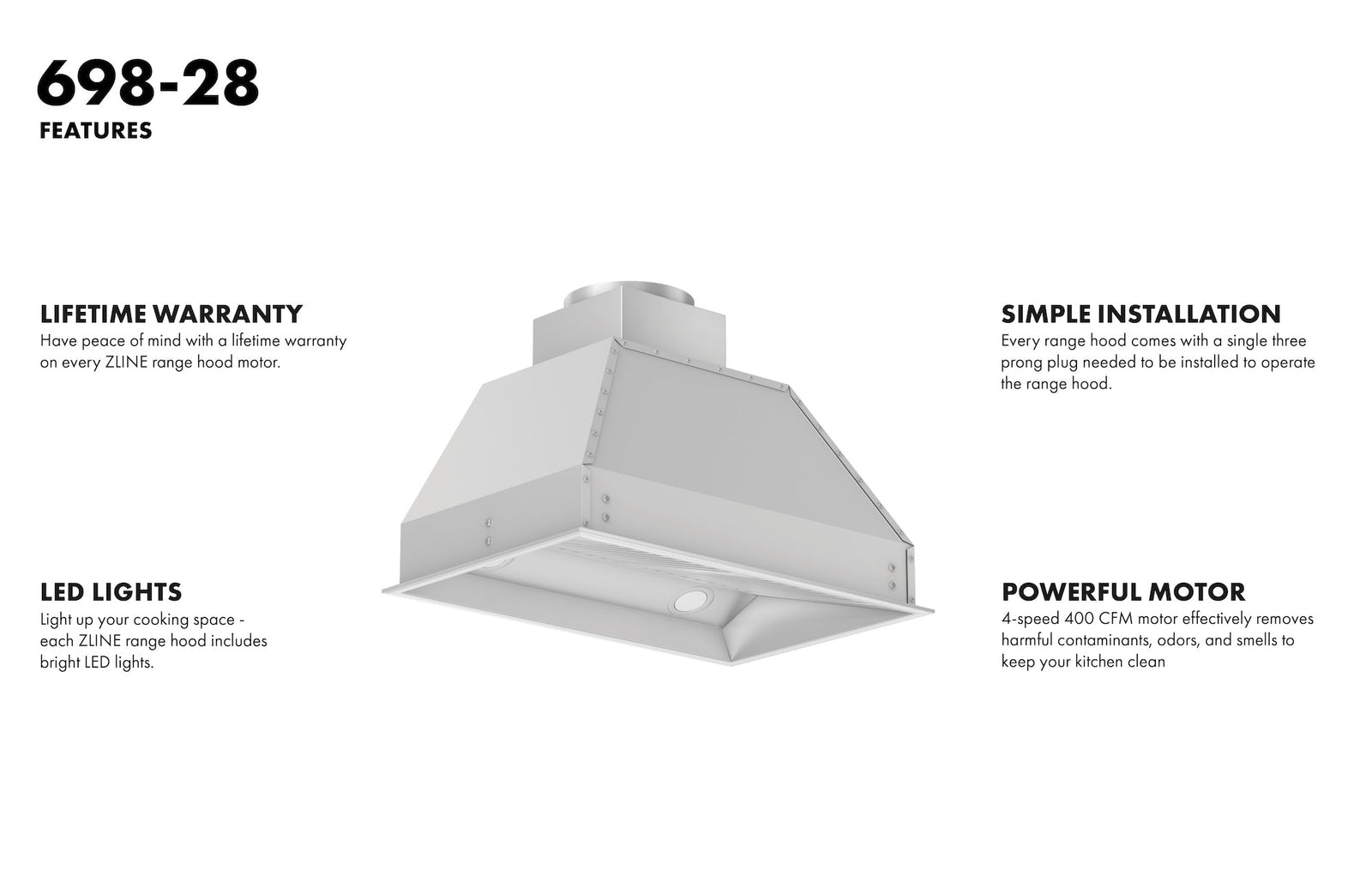 ZLINE 28 in. Width Wall Mount Range Hood Insert (18 in. Depth), 698-28