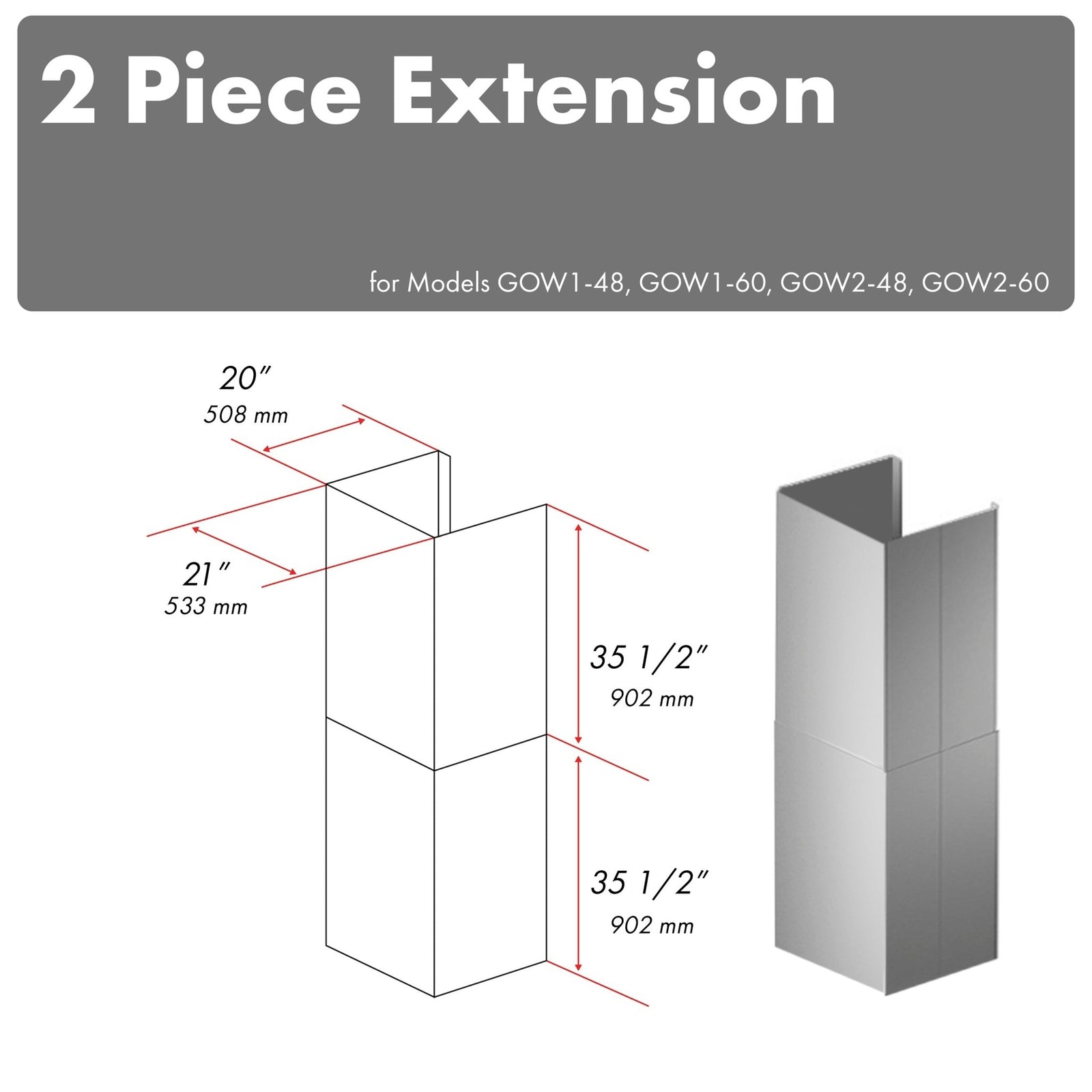 ZLINE 2 Piece 36 in. Chimney Extensions for Wall Mount Outdoor Grill Hood (2PEXT-GOW36)