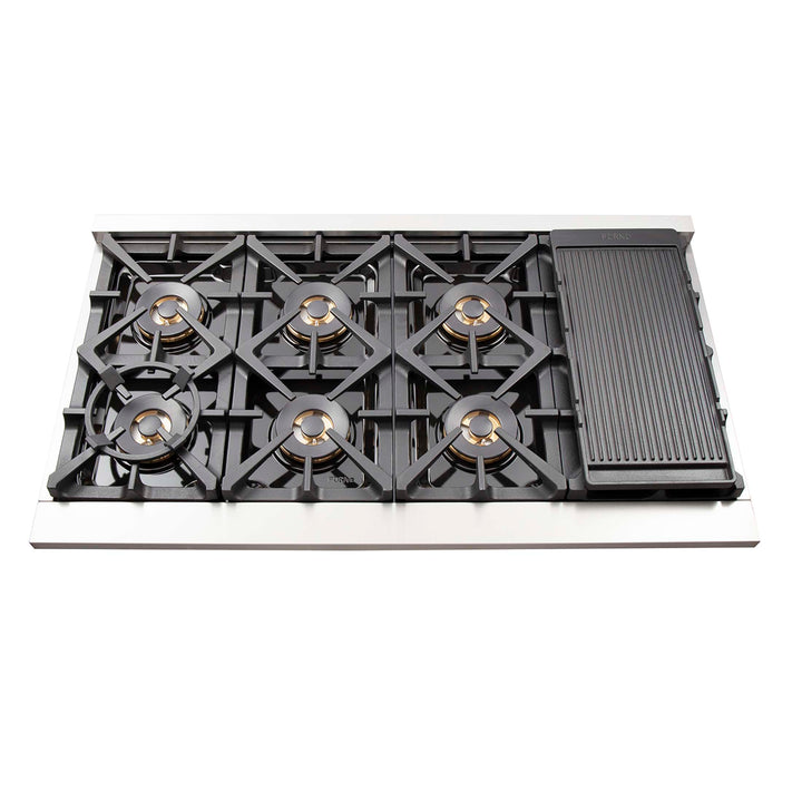 * Sealed Dual-Ring Brass Burners can achieve high heat searing or delicate simmering control