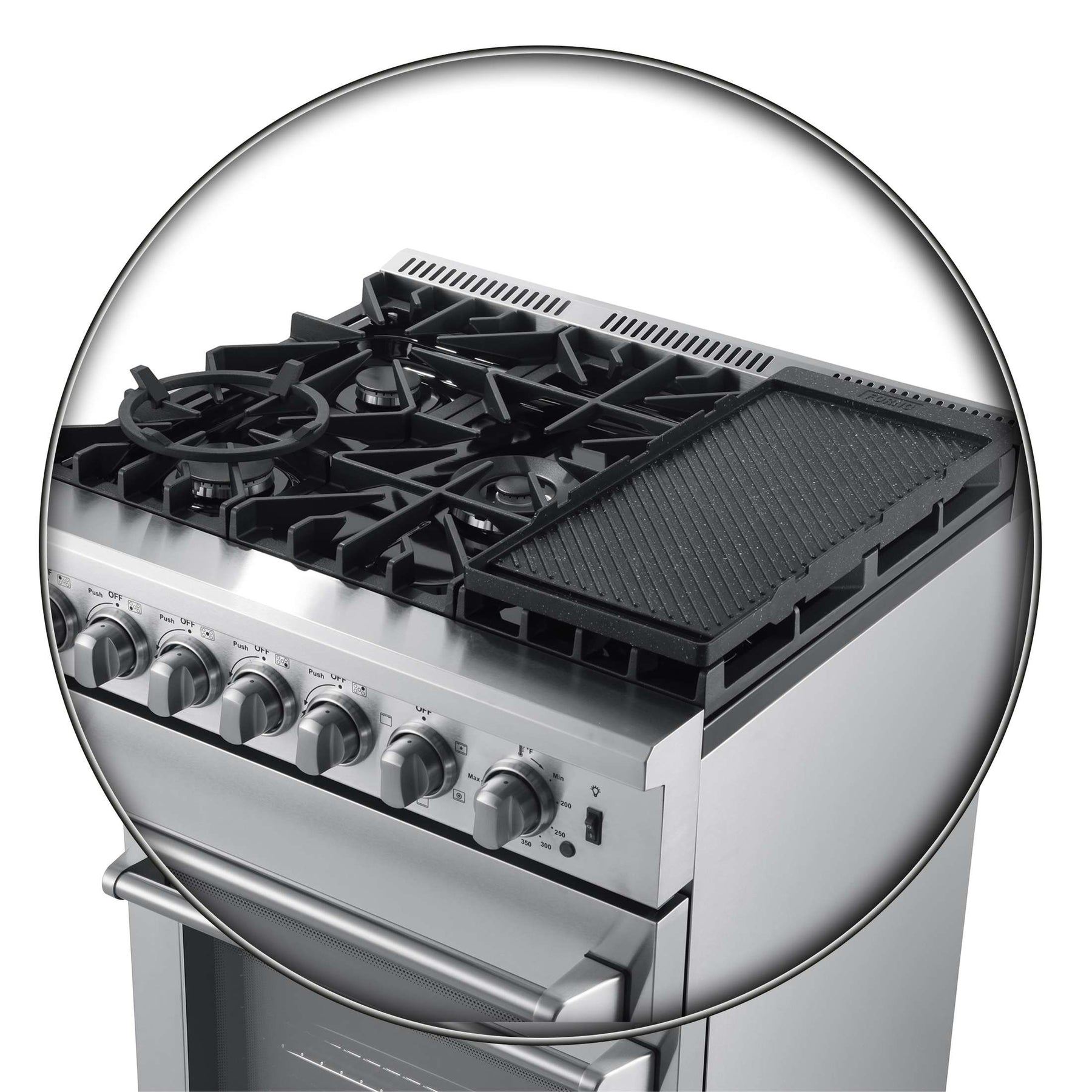 * Continuous cast iron grates ensure even heat, providing cookware stability and mobility off the source.