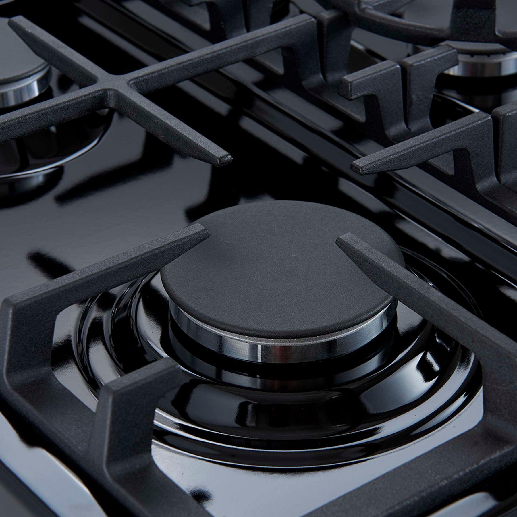 * Continuous cast iron grates ensure stability and mobility for cookware both on and off the heat source.