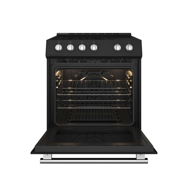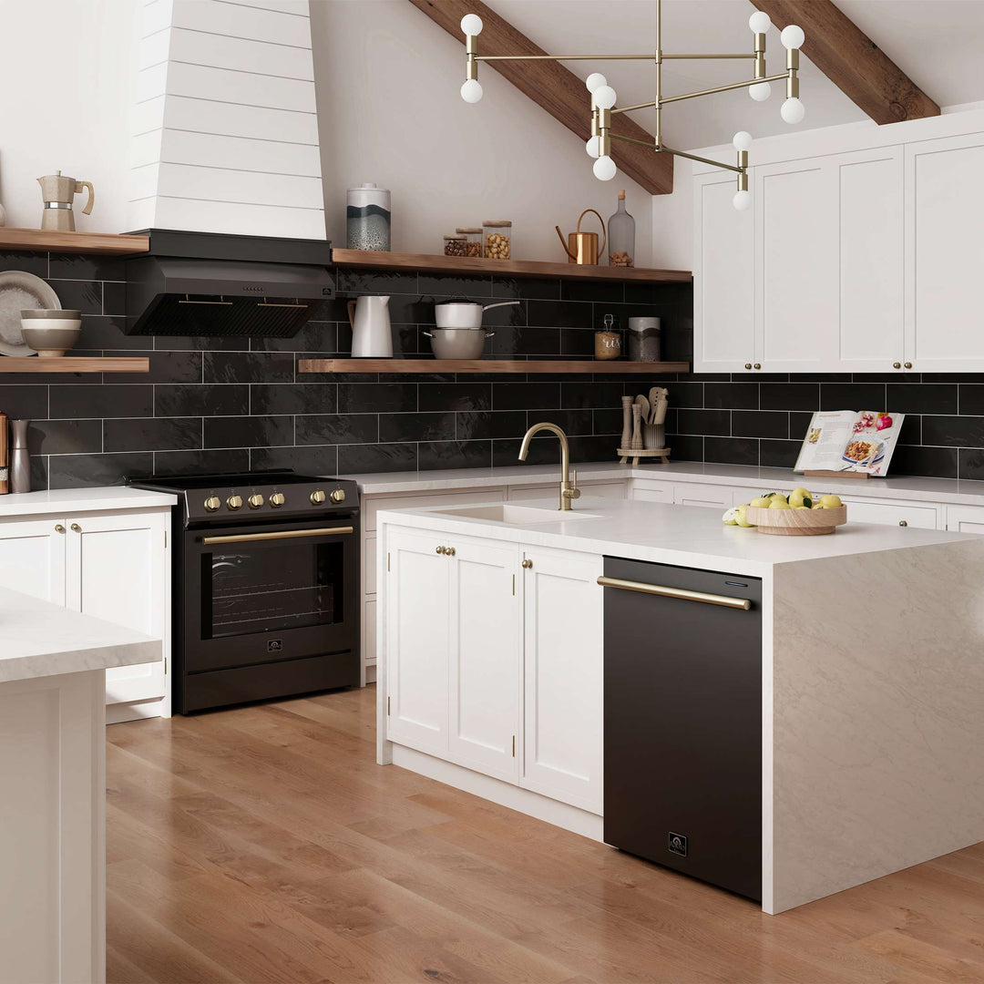 Introducing the Forno Leonardo Espresso 30 Inch 5.0 cu. Ft. Black Electric Range, a kitchen game-changer. With Antique Brass accents, 4 Radiant Elements, and a 5,500-watt Convection Oven, it combines style with top-notch performance. Antique Brass Knobs and Handles add a touch of elegance, while Ceramic Glass ensures even heat distribution. The Hidden Bake Element simplifies maintenance by preventing spills and odors. Elevate your kitchen with this timeless, user-friendly range, marrying durability with sophistication. Cook with confidence, and embrace efficiency and style with every use.