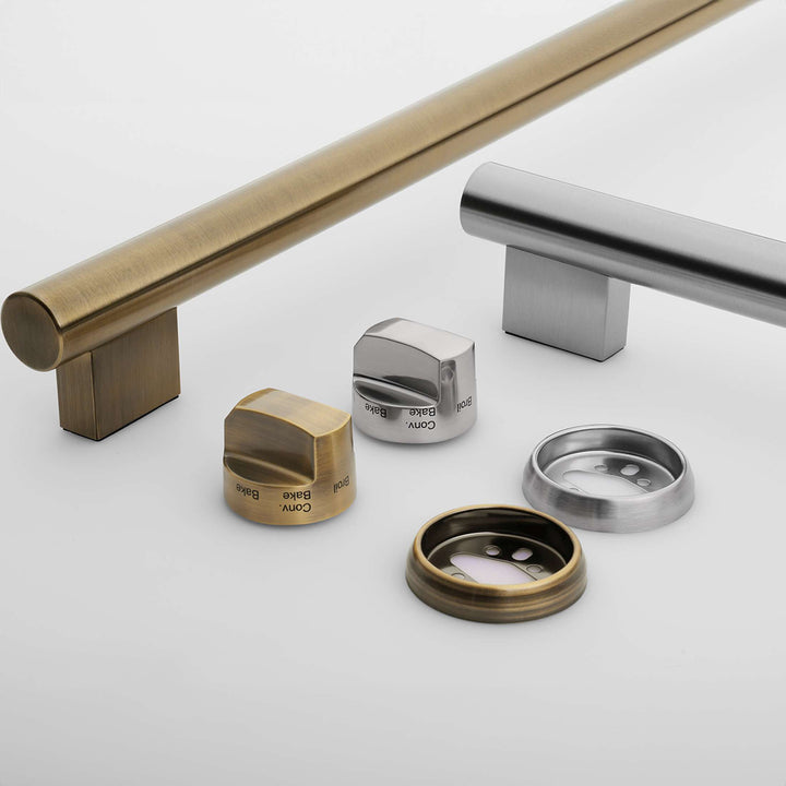 * Customize your kitchen with antique brass and stainless steel knobs and handles, adding a unique and stylish touch.