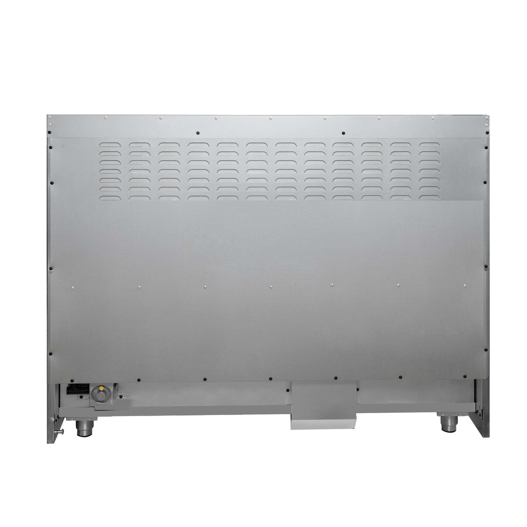 The Galiano 48" Dual Fuel Range blends professional style and performance in elegant white with antique brass accessories. Featuring eight sealed burners with a total output of 107,000 BTU, including a powerful 20,000 BTU dual-ring burner for boiling or searing, it gently simmers delicate foods, such as chocolate and sauces. The cast iron grates provide stability and smooth pan sliding, while the 6.58 cu. ft. electric oven delivers 9,700 watts of power, making it perfect for baking, roasting, and broiling with true convection options. Included are four oven racks, an LP conversion kit, and elegant zinc-coated metal knobs with bezel rings that retain their beauty.
