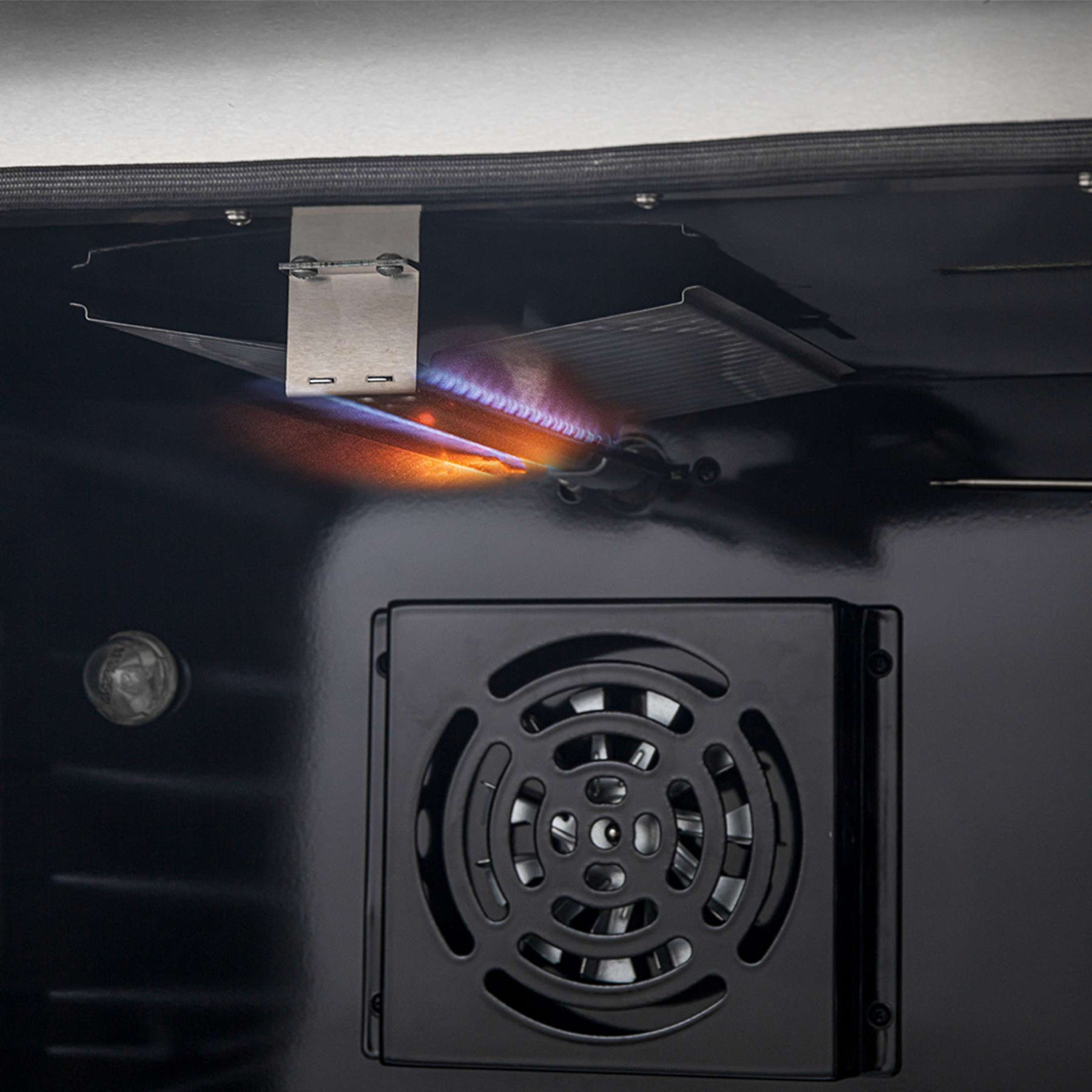 * Durable cast iron grates provide cookware stability and ensure smooth movement across the cooking surface.