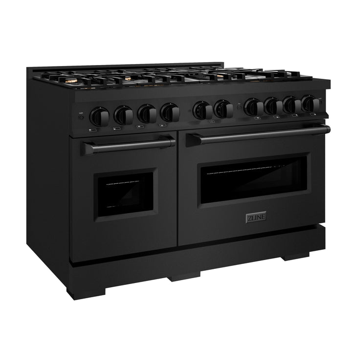 The ZLINE 48" 6.7 cu. ft. Classic Double Oven Dual Fuel Range in Black Stainless Steel with 8 Brass Burners (CDRB-BR-48) combines the elegance of a hand-finished porcelain gas cooktop with 8 Italian-made brass auto-reignition burners, a large electric convection oven with an energy-efficient cooling fan to ensure quiet operation, a small bake-and-broil oven, and Landscape oven door window designs allowing you to master every meal. With a modern, timeless style and refined functionality, ZLINE Classic Dual Fuel Ranges are masterfully crafted to deliver an elevated culinary experience.