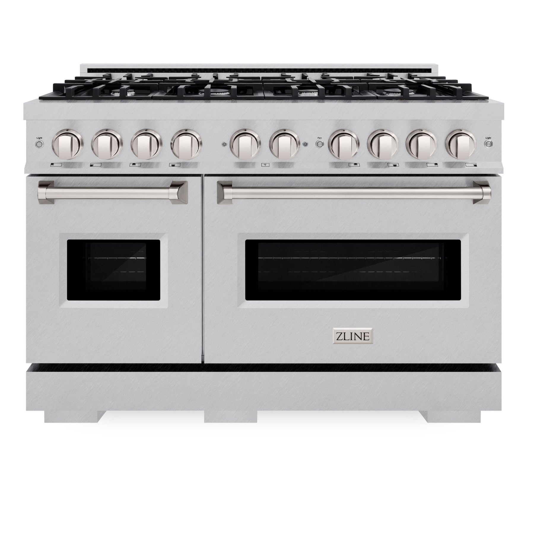 The ZLINE 48" 6.7 cu. ft. Classic Double Oven Gas Range with 8 Burner Cooktop in DuraSnow Stainless Steel (CGRS-48) combines the elegance of a hand-finished porcelain gas cooktop with 8 Italian-made auto-reignition burners, a large gas convection oven with an energy-efficient cooling fan to ensure quiet operation, a small baking oven, and Landscape oven door window designs allowing you to master every meal. With a modern, timeless style and refined functionality, ZLINE Classic Gas Ranges are masterfully crafted to deliver an elevated culinary experience.