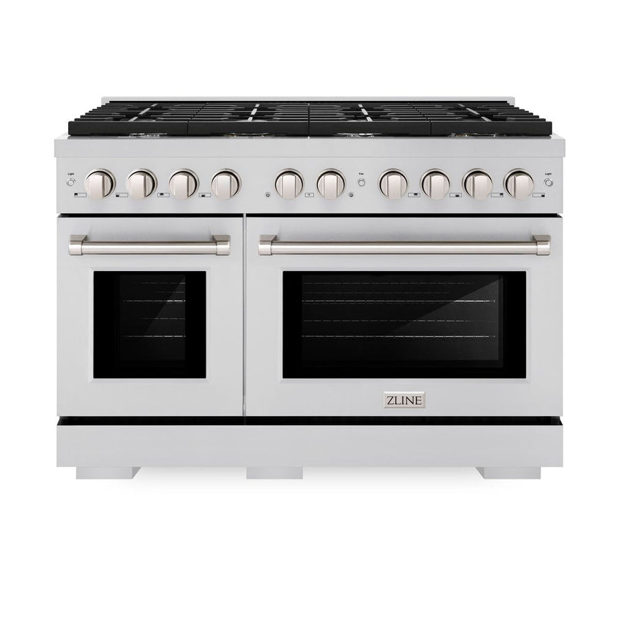 Luxury meets attainable with the ZLINE 48” 6.7 cu. ft. 8 Burner Double Oven Gas Range in Stainless Steel. Crafted with a commitment to both modern style and functional excellence, this professional gas range offers a sophisticated culinary experience for home chefs.