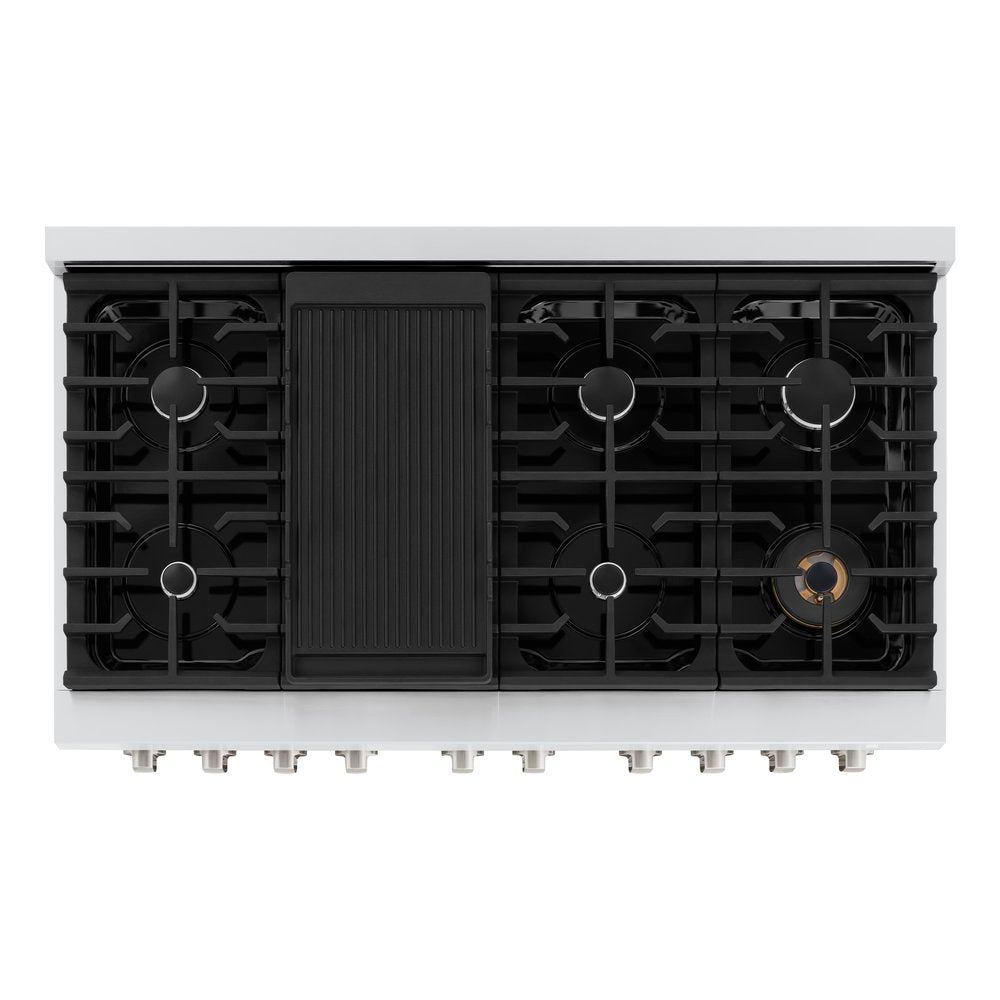 8 Italian-made gas burners effortlessly ignite and automatically reignite for enhanced temperature control and safety.