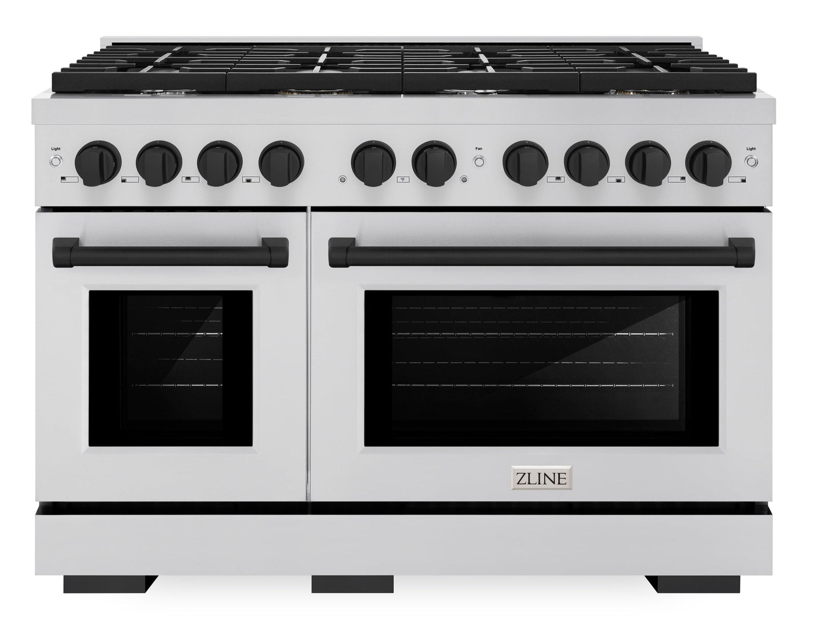 The ZLINE Autograph Edition 48" 6.7 cu. ft. Paramount Dual Fuel Range offers a blend of gas and electric cooking capabilities with an electric convection oven, automatic reignition burners, and advanced temperature control technology. This range also features sturdy cast iron grates and a Horizon oven door window design. Designed with a contemporary, timeless aesthetic and superior functionality, the ZLINE Paramount Dual Fuel Range delivers an exceptional culinary performance.