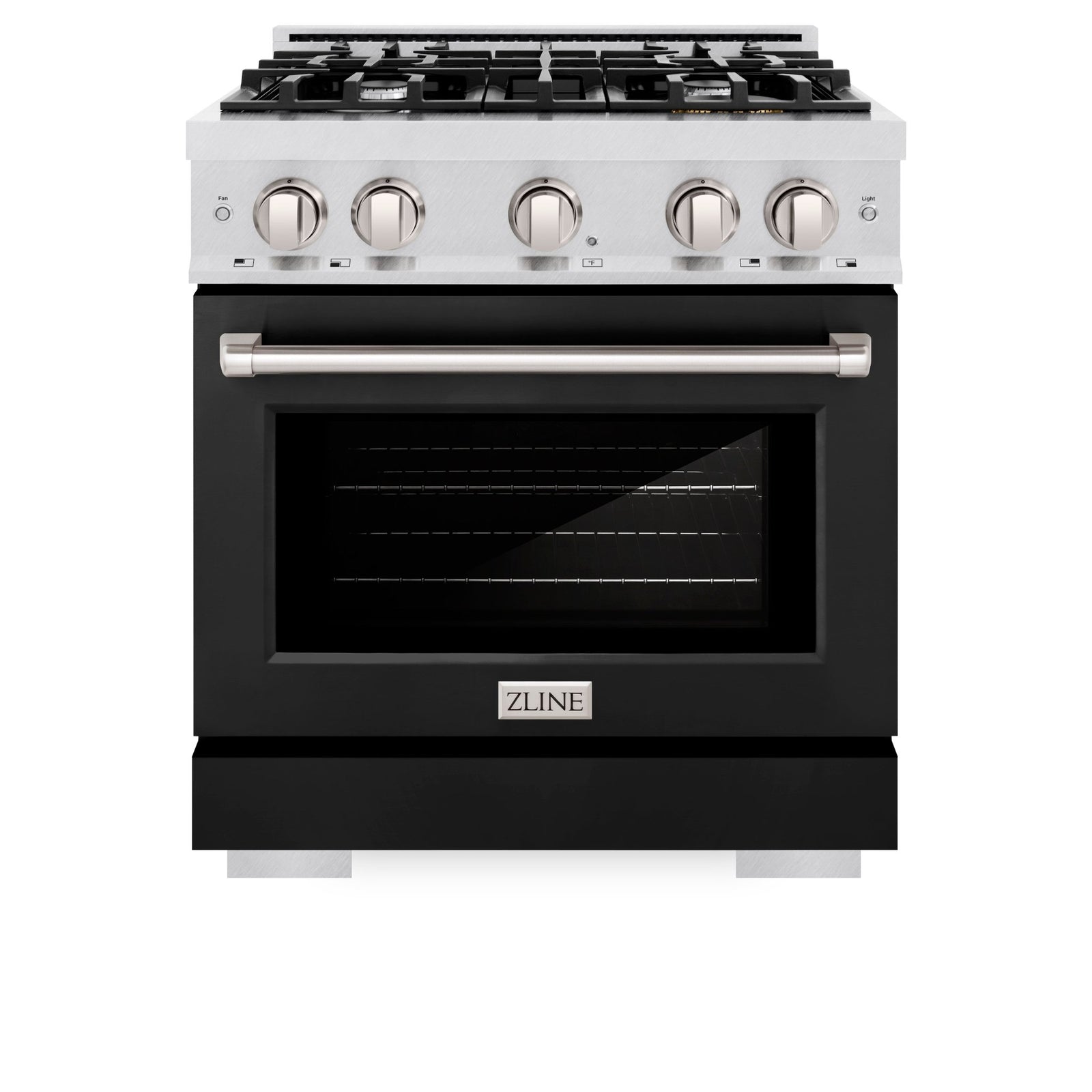 ZLINE 30 in. 4.2 cu. ft. Select Dual Fuel Range with 4 Burner Gas Cooktop and Electric Convection Oven in Satin Stainless Steel with Black Matte Door (HDRS-BLM-30)