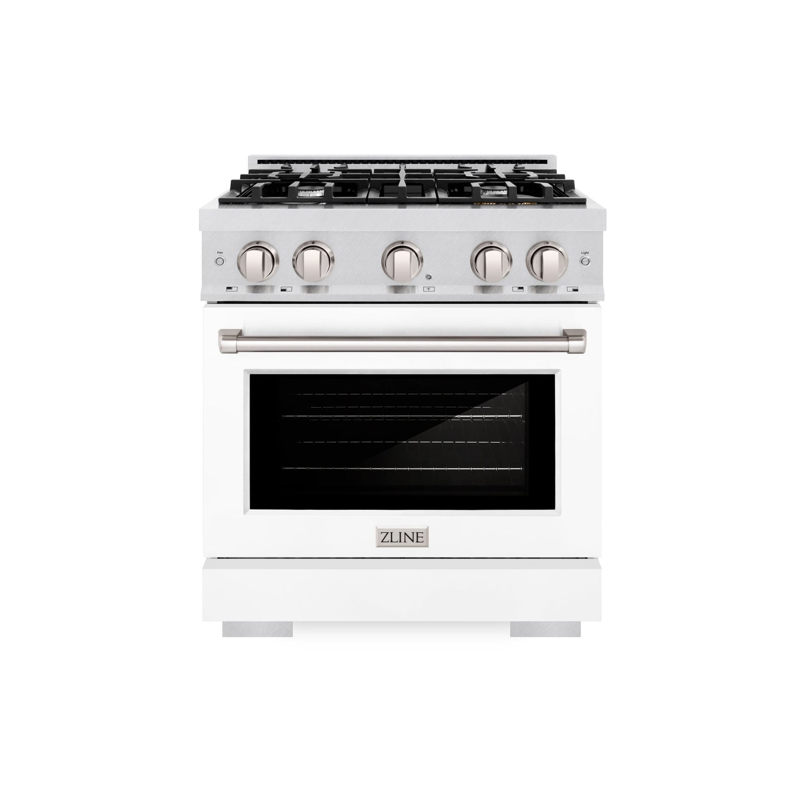 ZLINE 30 in. 4.2 cu. ft. Select Dual Fuel Range with 4 Burner Gas Cooktop and Electric Convection Oven in Satin Stainless Steel with White Matte Door (HDRS-WM-30)