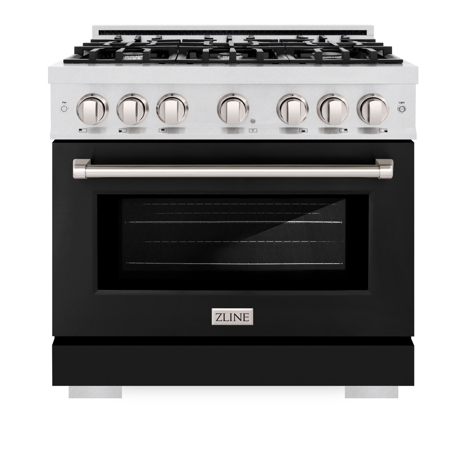 ZLINE 36 in. 5.2 cu. ft. Select Dual Fuel Range with 6 Burner Gas Cooktop and Electric Convection Oven in Stainless Steel with Black Matte Door (HDR-BLM-36)