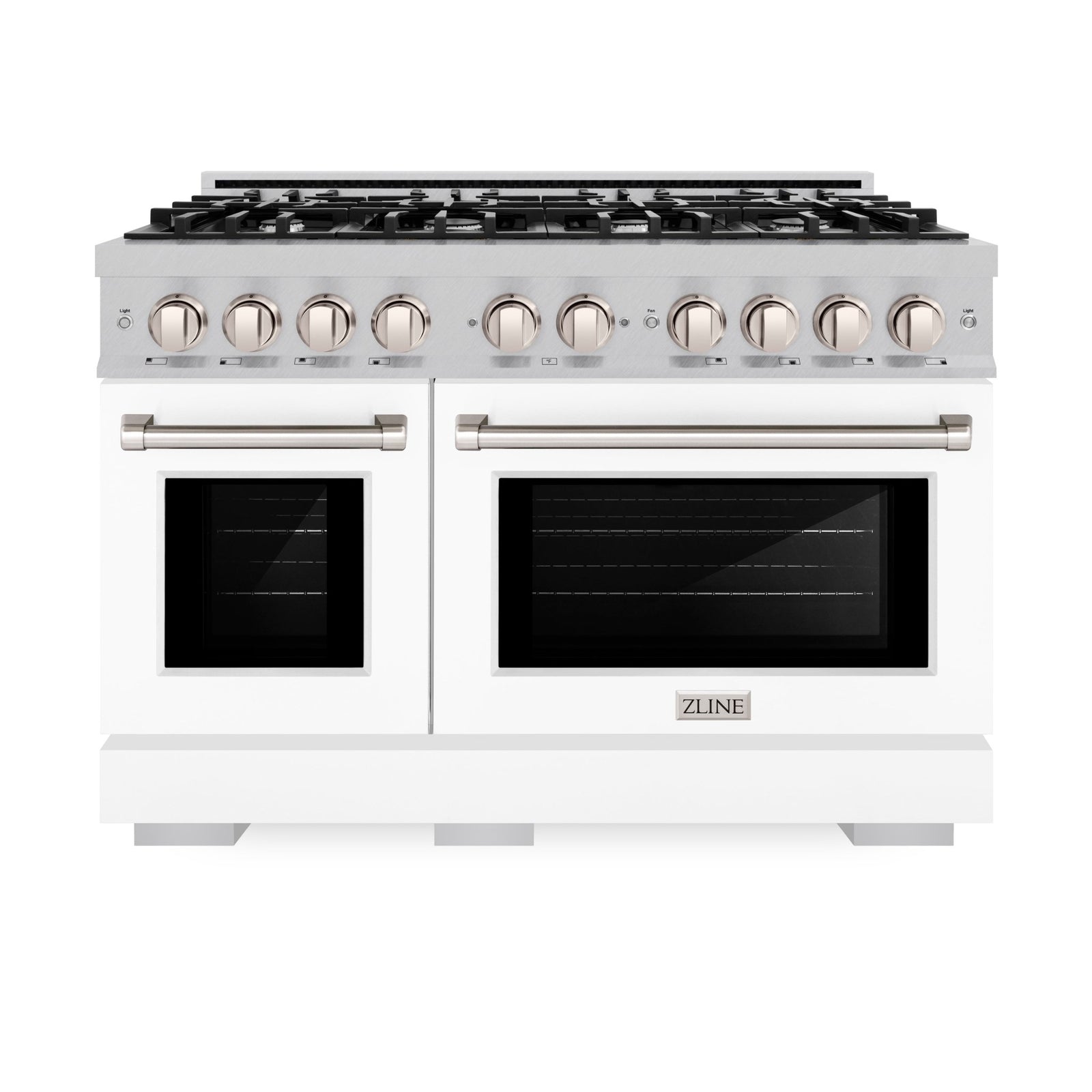 ZLINE 48 in. 6.7 cu. ft. Select Double Oven Dual Fuel Range with 8 Burner Gas Cooktop in Satin Stainless Steel with White Matte Doors (HDRS-WM-48)