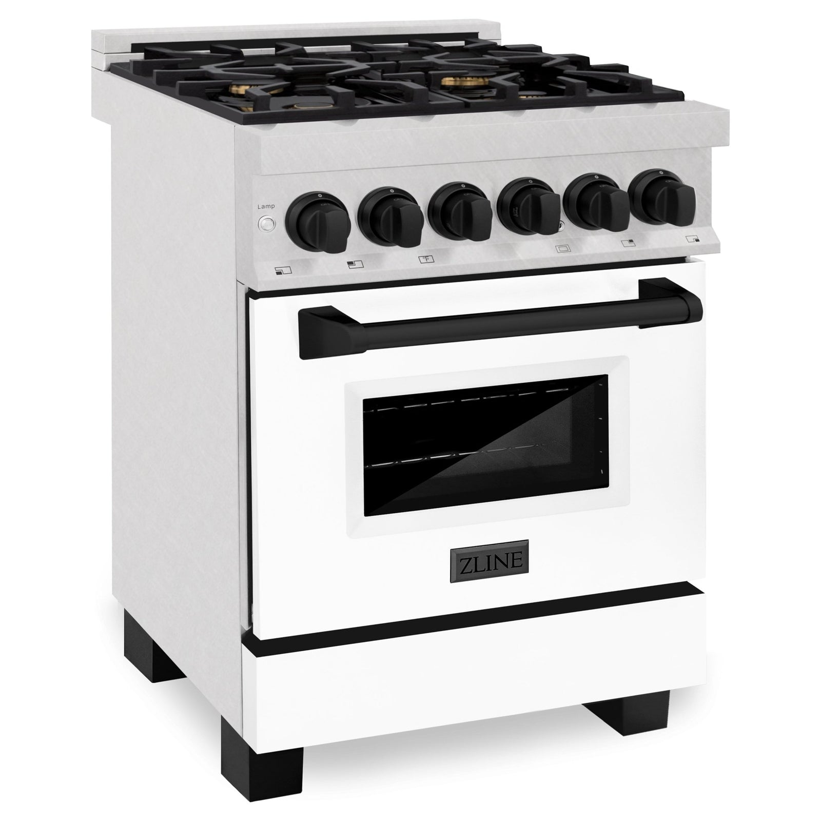 ZLINE Autograph Edition 24 in. 2.8 cu. ft. Legacy Dual Fuel Range with 4 Burner Gas Cooktop and Electric Convection Oven in Satin Stainless Steel with White Matte Door and Matte Black Accents (RASZ-WM-24-MB)