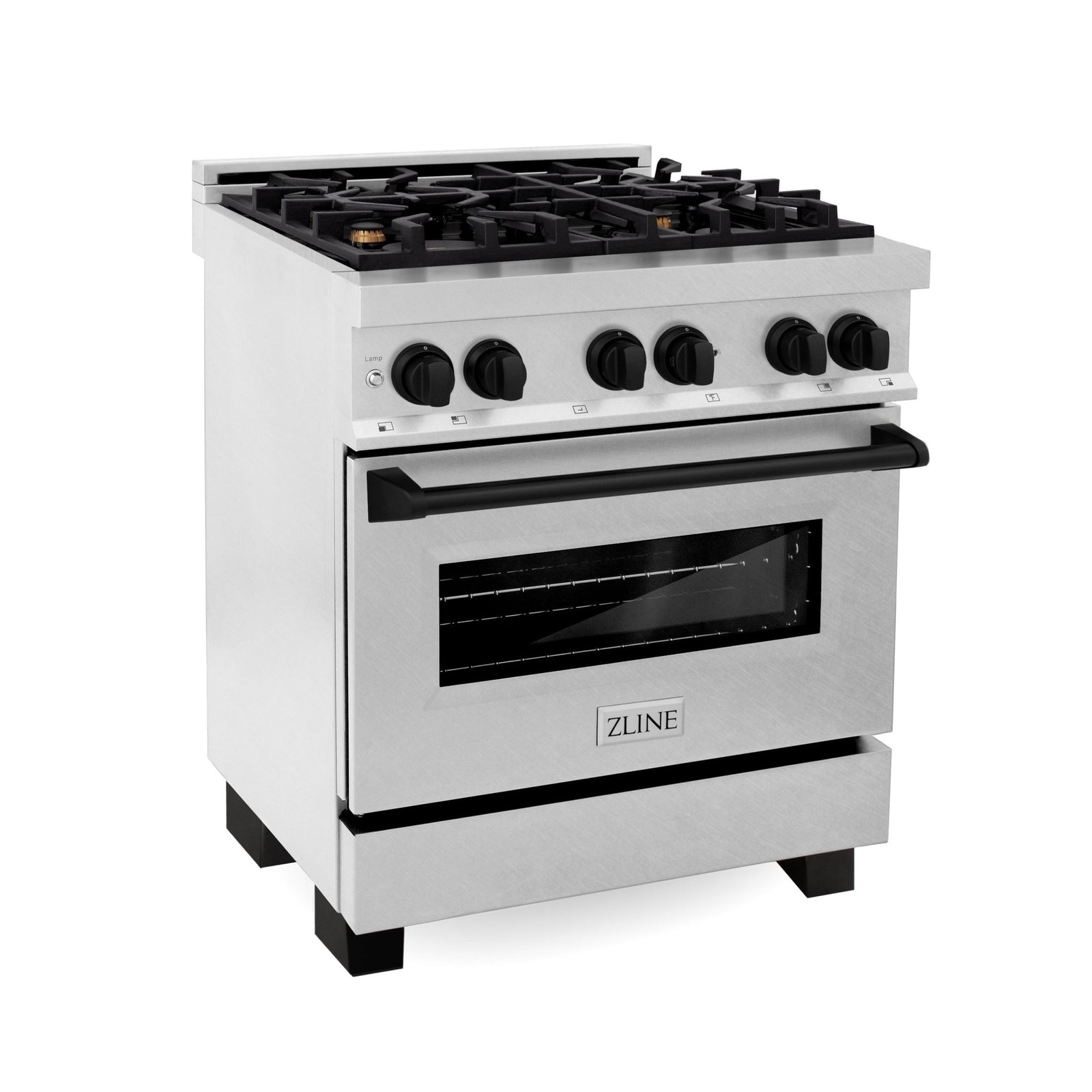 ZLINE Autograph Edition 30 in. 4.0 cu. ft. Legacy Dual Fuel Range with 4 Burner Gas Cooktop and Electric Convection Oven in Satin Stainless Steel and Matte Black Accents (RASZ-SN-30-MB)