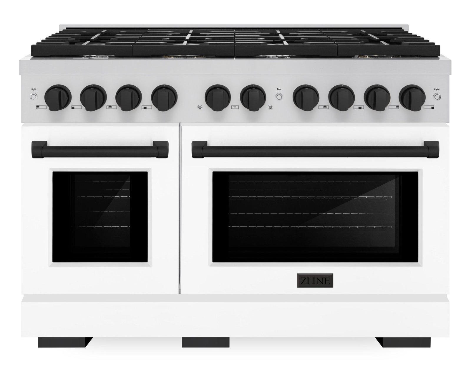 ZLINE Autograph 48" 6.7 cu. ft. Paramount Double Oven Dual Fuel Range with 8 Burners with White Matte Doors and Matte Black Accents, SDRZ-WM-48-MB