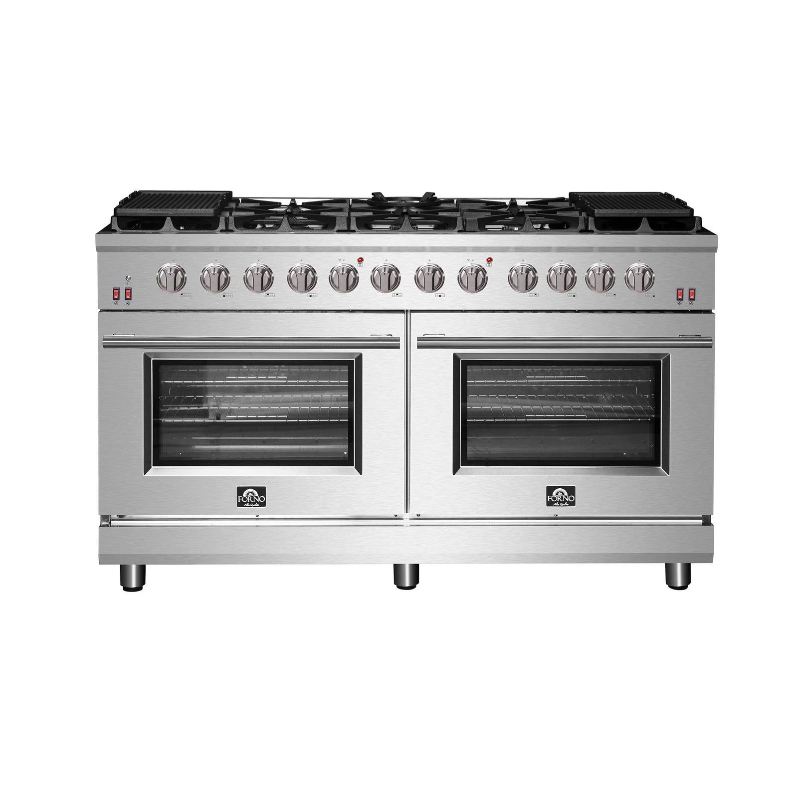 Forno Massimo 60-Inch Freestanding Dual Fuel Range, 10 Burners, Double Convection Ovens