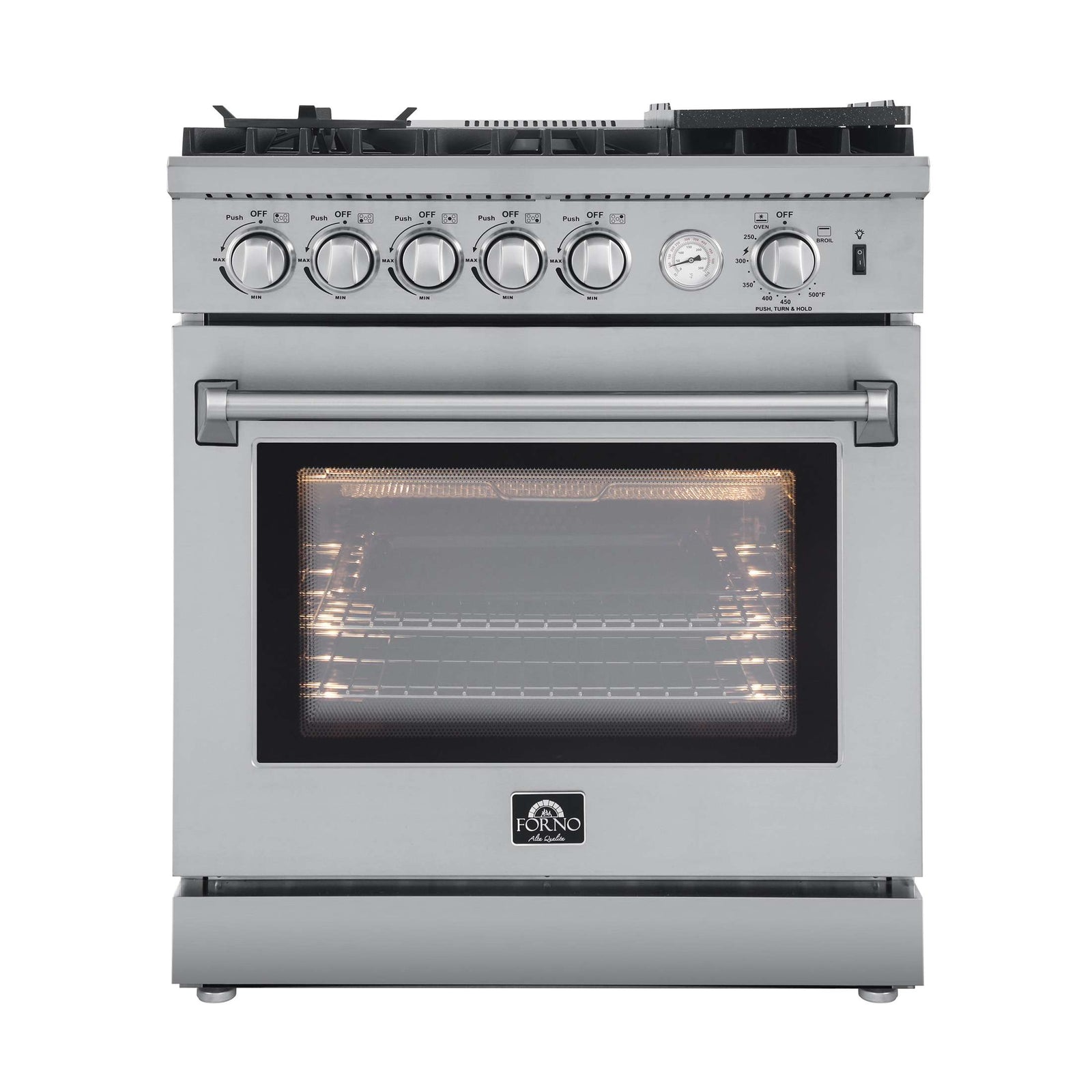 Forno Massimo 30-Inch Freestanding Gas Range, 4 Burners, True Convection Oven