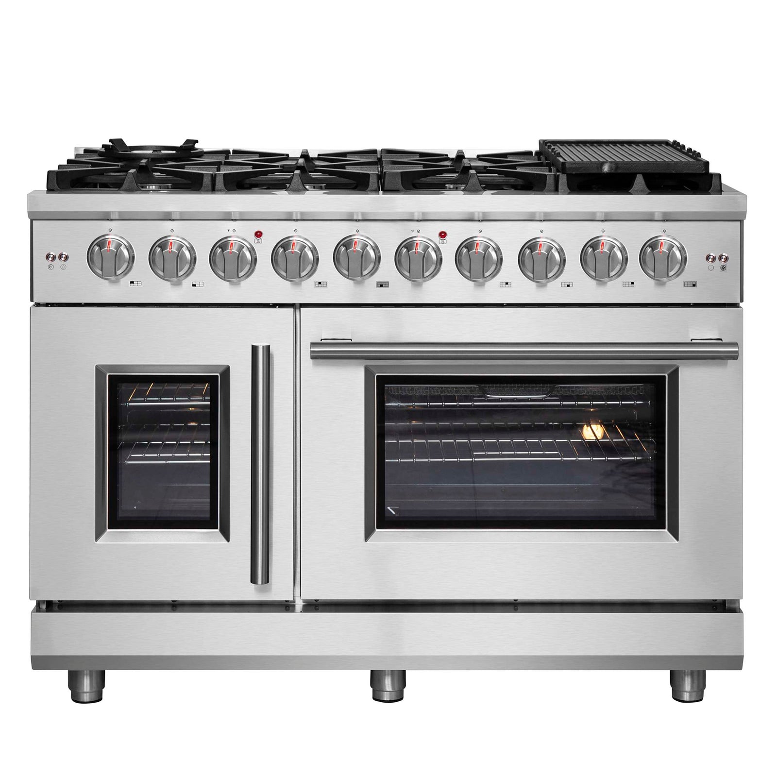 Forno Massimo 48-Inch Freestanding French Door Gas Range, 8 Burners, Convection Oven, Energy Efficient