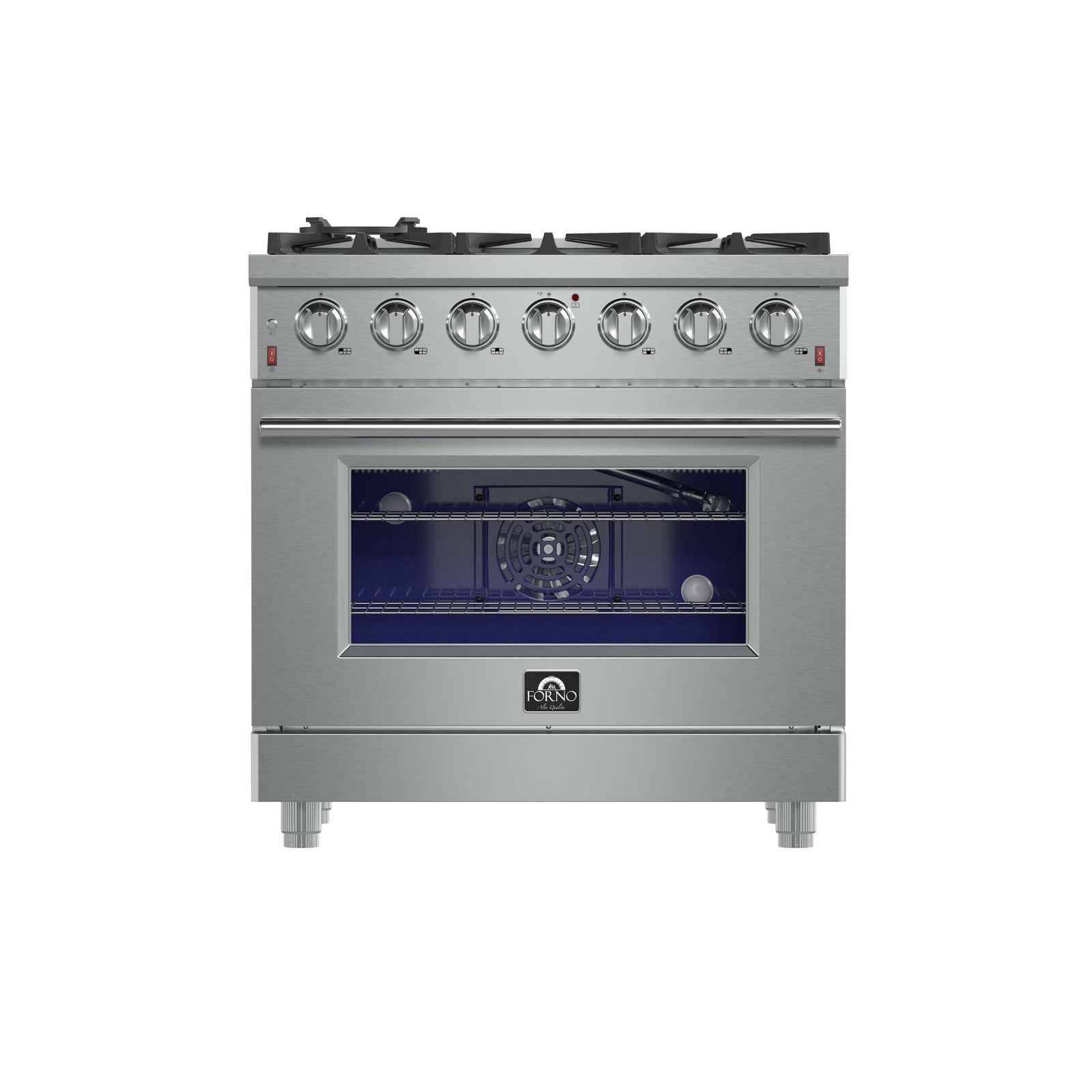 Forno Massimo 36-Inch Freestanding Dual Fuel Range, 6 Burners, Double Convection Ovens