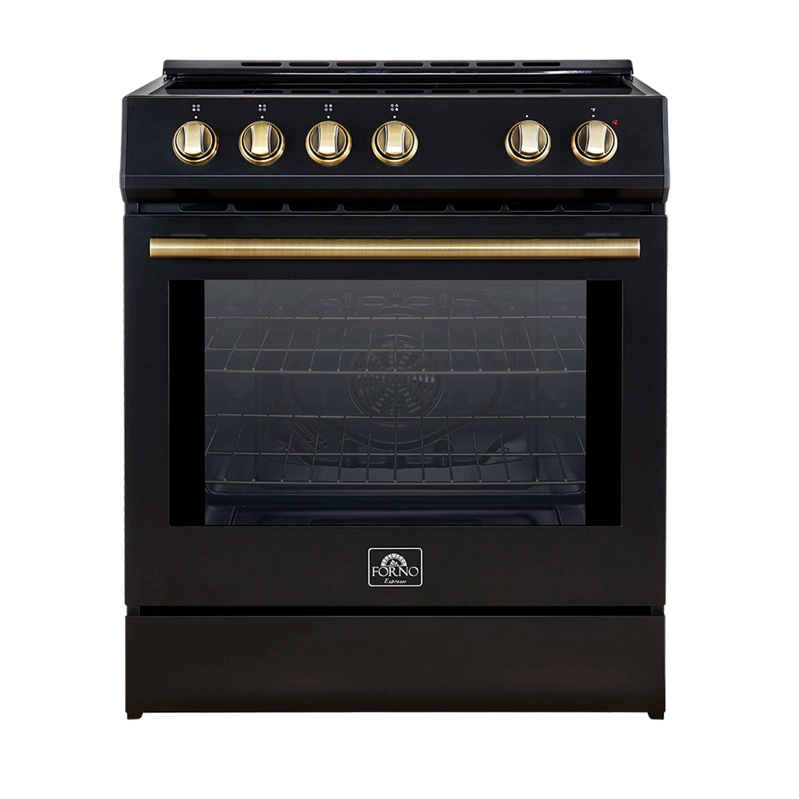 Forno Leonardo Espresso 30-Inch Slide-In Black Induction Range, Convection Oven, 5 Cooking Zones, Touch Control Panel